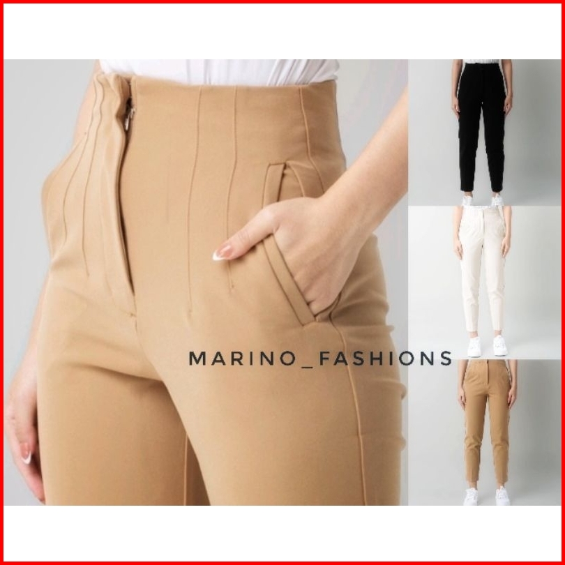 Aerum Highwaist Scuba Pants Saku Paspol Celana Zipper Scuba Pants