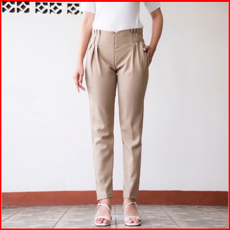 Celana Kerja Baggy Pants Pinggang Rempel Model Terbaru Size M - Xxl Premium Quality
