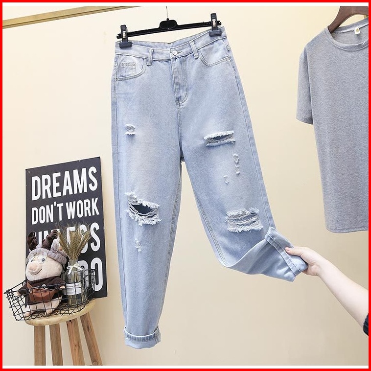Celana Jeans Panjang Celana Denim Berlubang Celana Wanita Fashion Harlan Jeans Celana Tampak Kurus