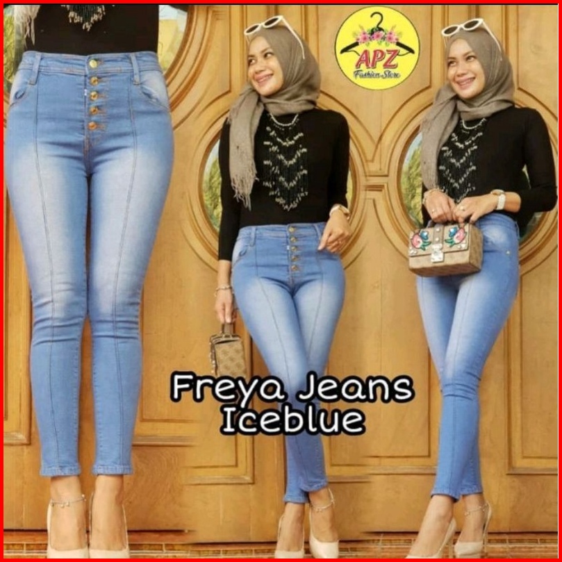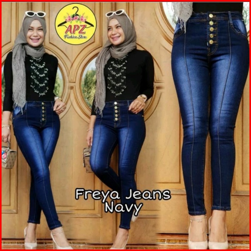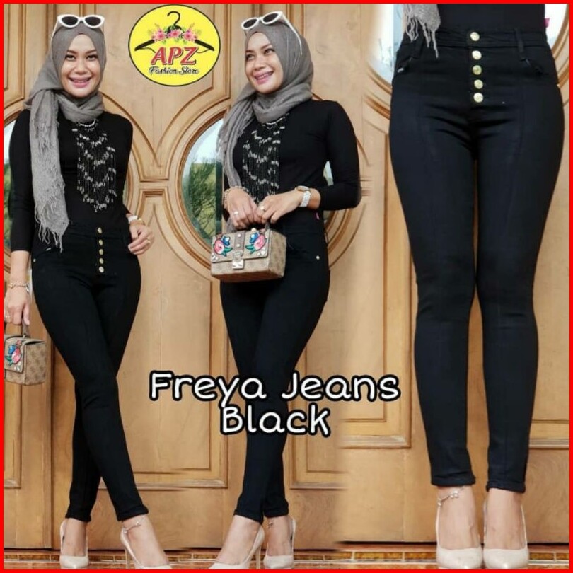 Celana Panjang High Waist Kancing 5 Line Freya . Celana Panjang High Waist Button Highwaist Kancing