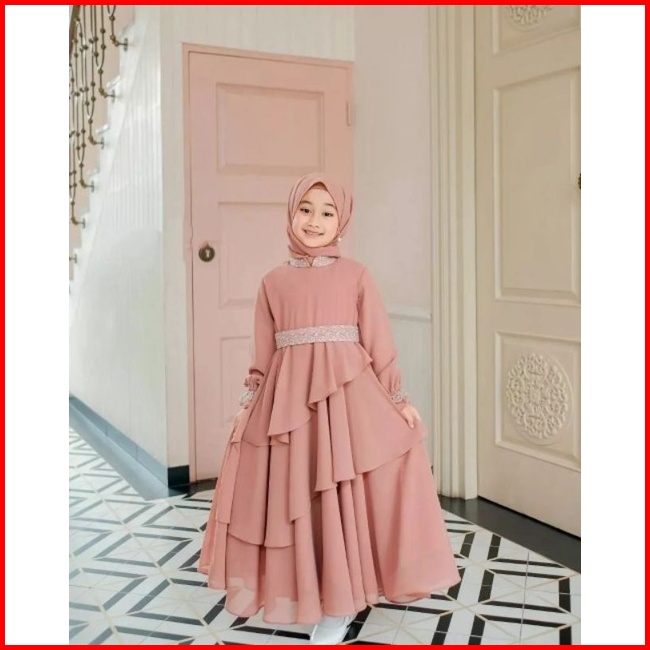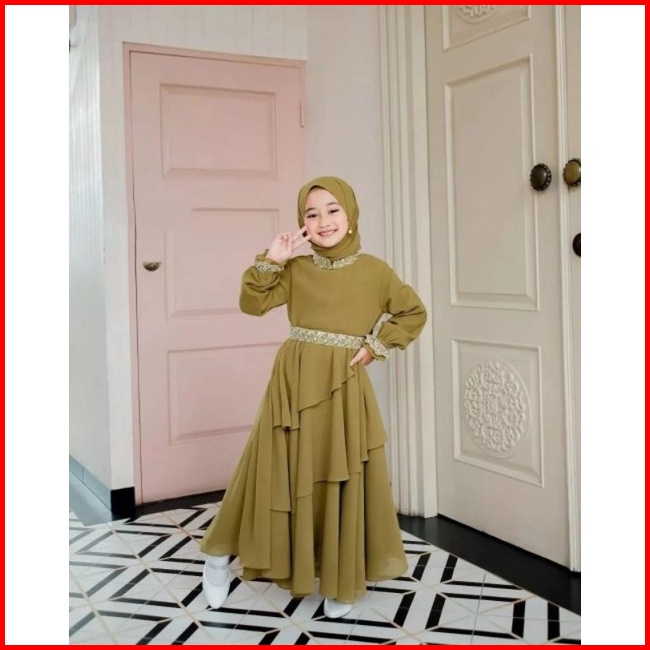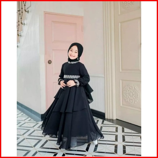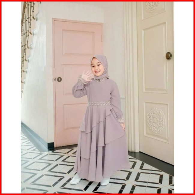 Mikayla Kids Gamis Anak Perempuan Terbaru Lebaran 2023 Gamis Anak Ceruty Babydoll Usia 7-8 Tahun Terbaru Gamis Anak Pere