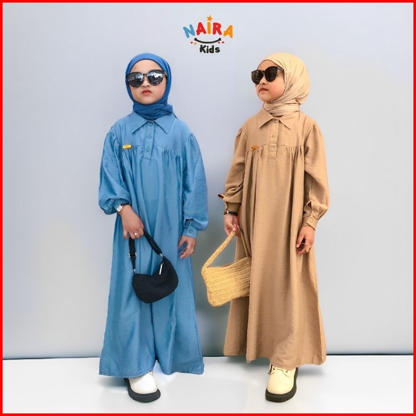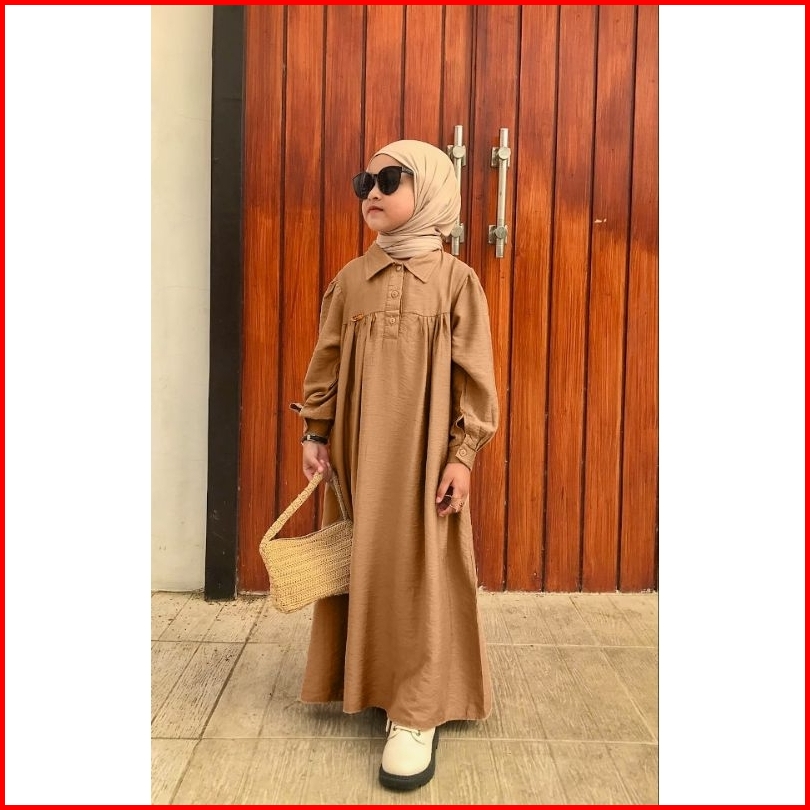 Shalima Long Dress Gamis Anak Perempuan Terbaru Usia 3-14 Tahun Bahan Polo Linen