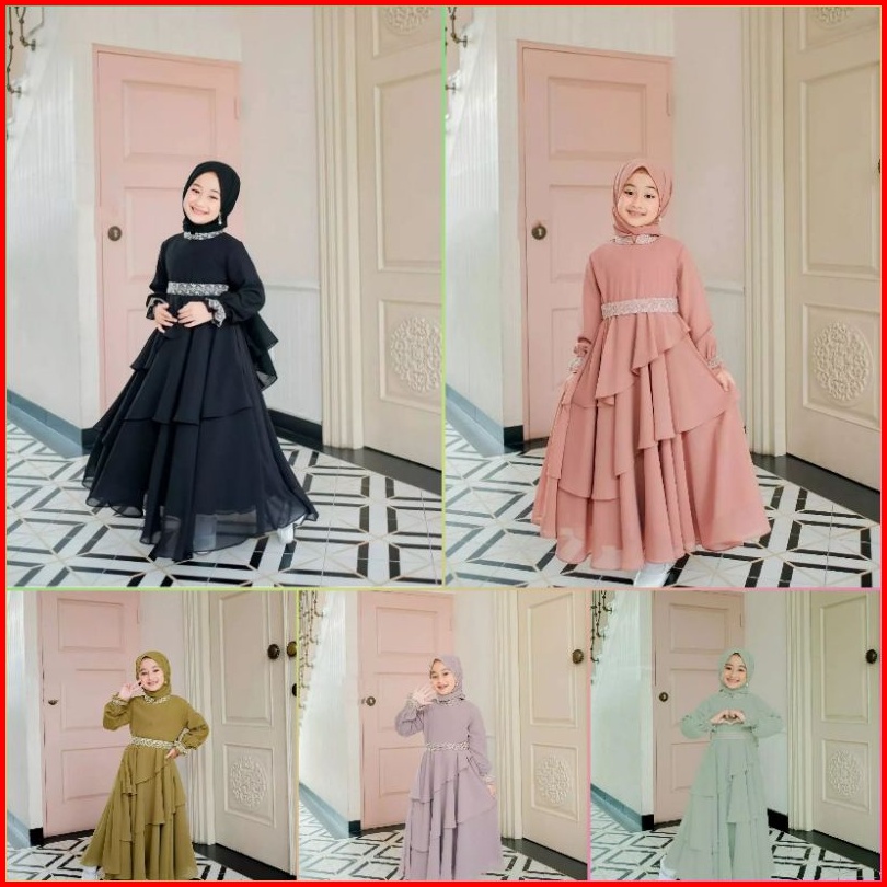 Mikayla Syari Anak 5 Thn-14 Thn Pasmina Gamis Anak Tanggung Baju Muslim Anak Bahan Ciruty Bebidol Gamis Anak Terlaris Mu
