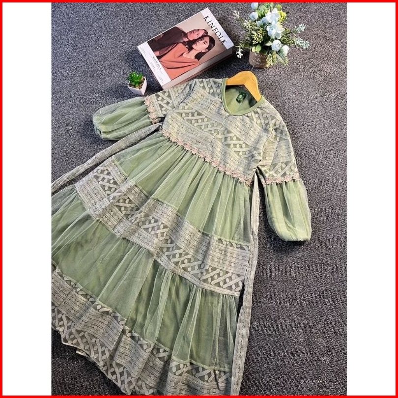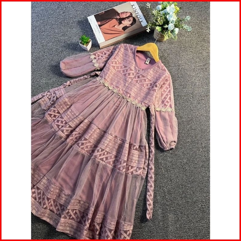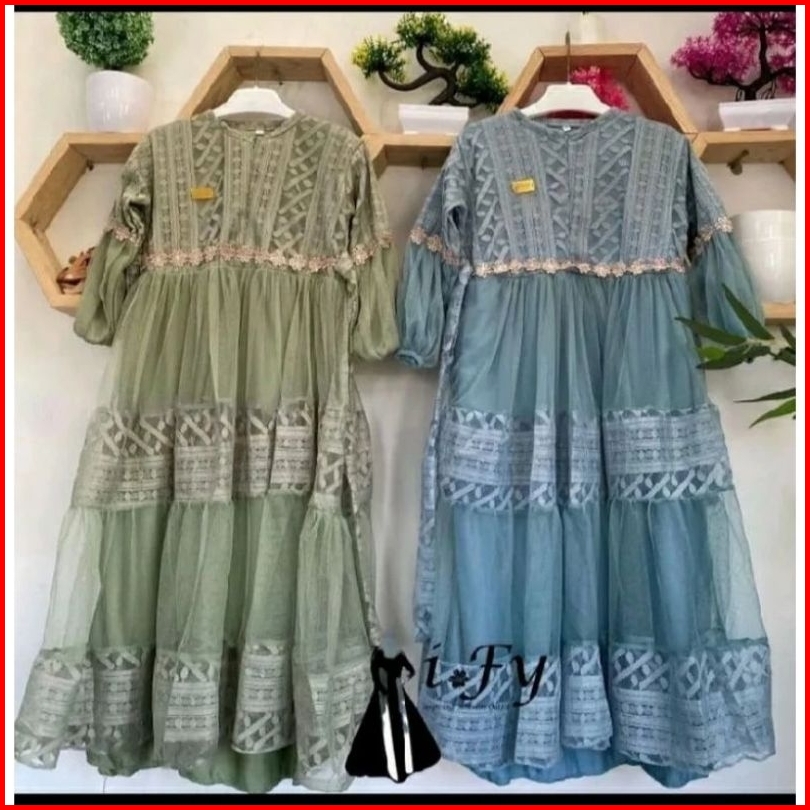 Gamis Dewani Pesta Anak Perempuan Bahan Brukat Tile Kekinian Ukuran S M L Xl Umur 3-17 Tahun Terlarir
