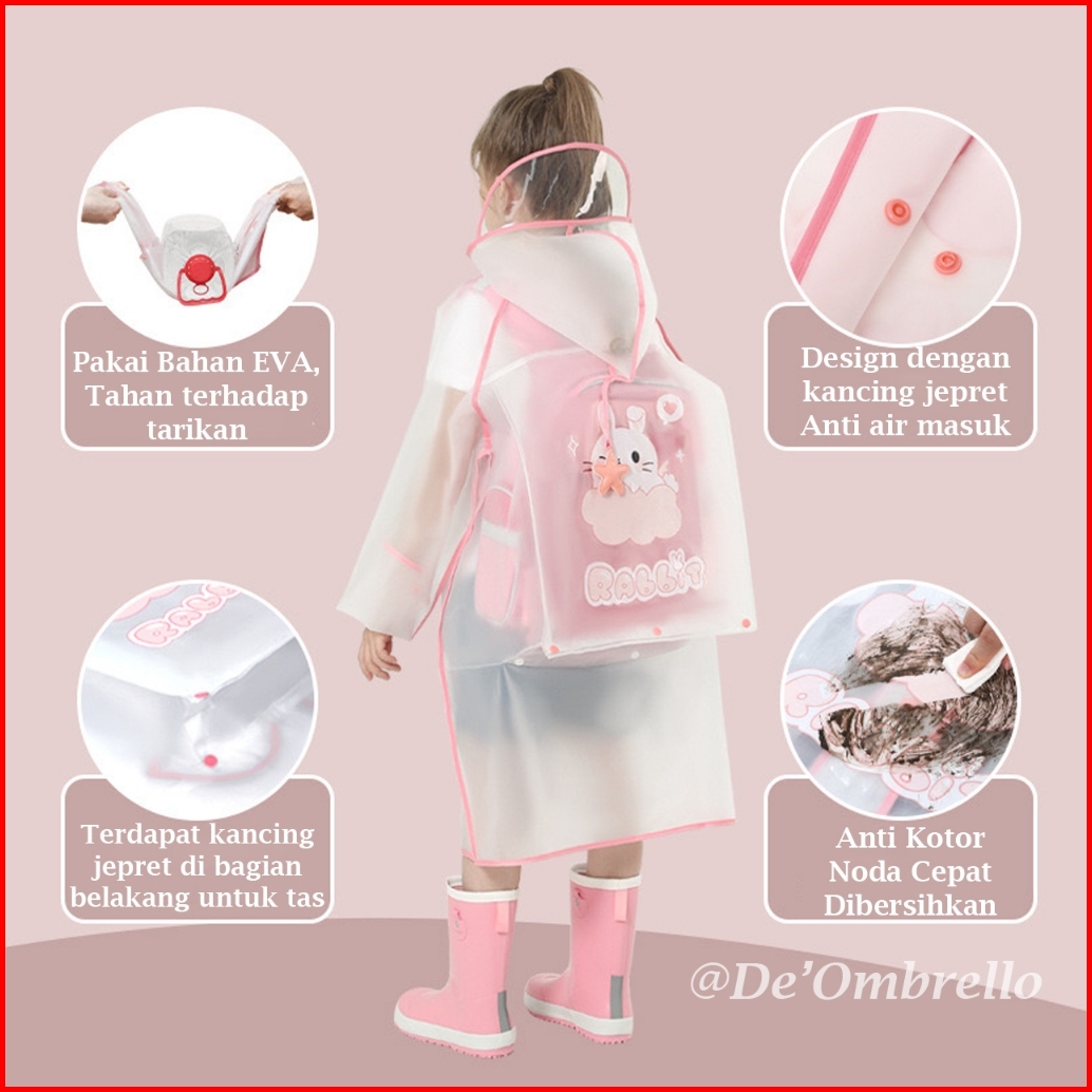 De Ombrello Jas Hujan Pvc Anak Motif Karakter Lucu Raincoat Best Quality Kode 895