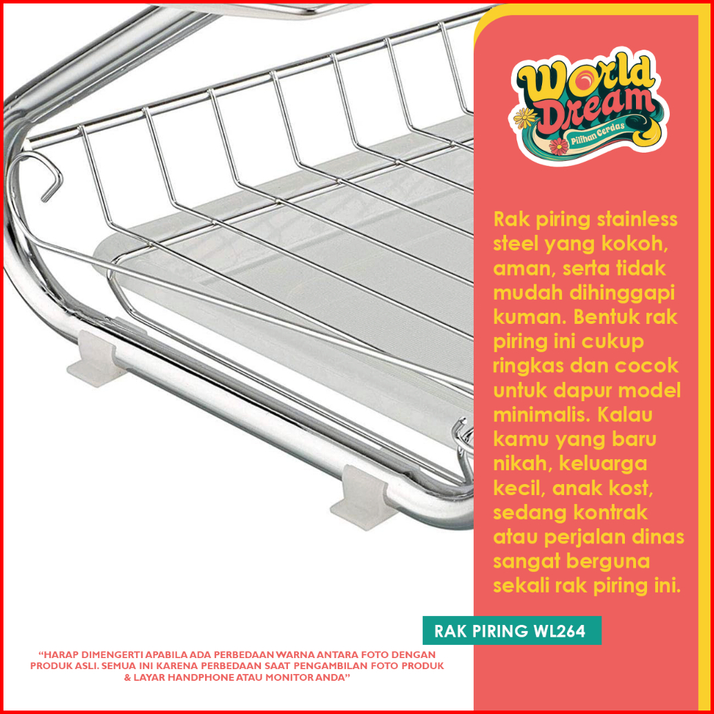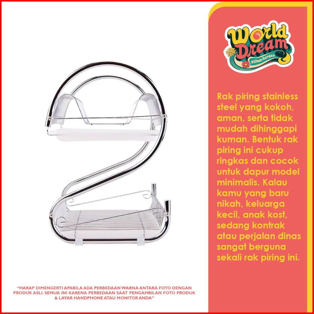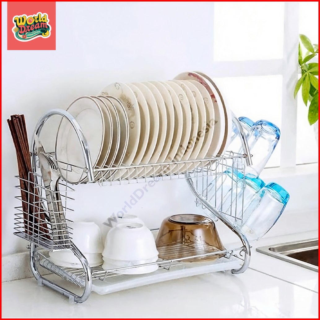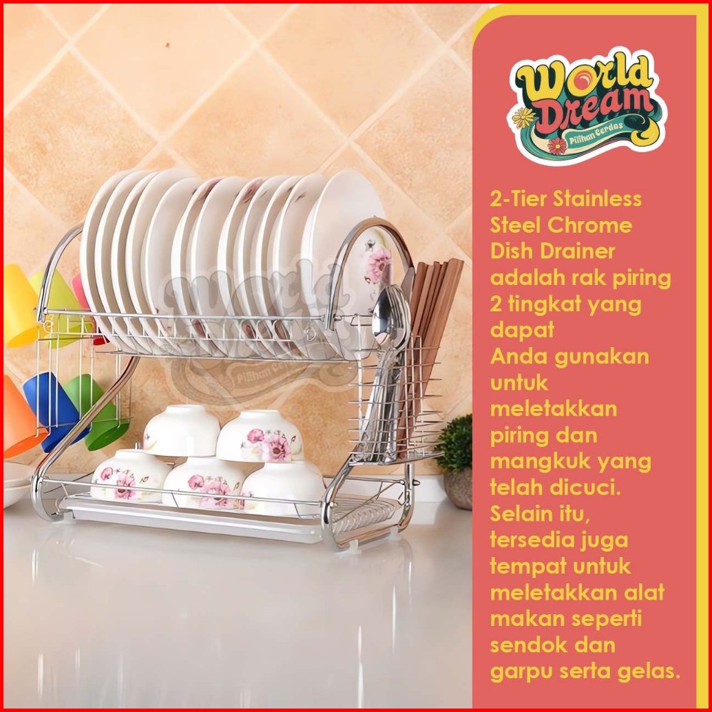 Worldream Rak Piring Stainless 2 Tingkat Rak Dapur Gelas Rak Sendok Rak Serbaguna Rak Piring Kost