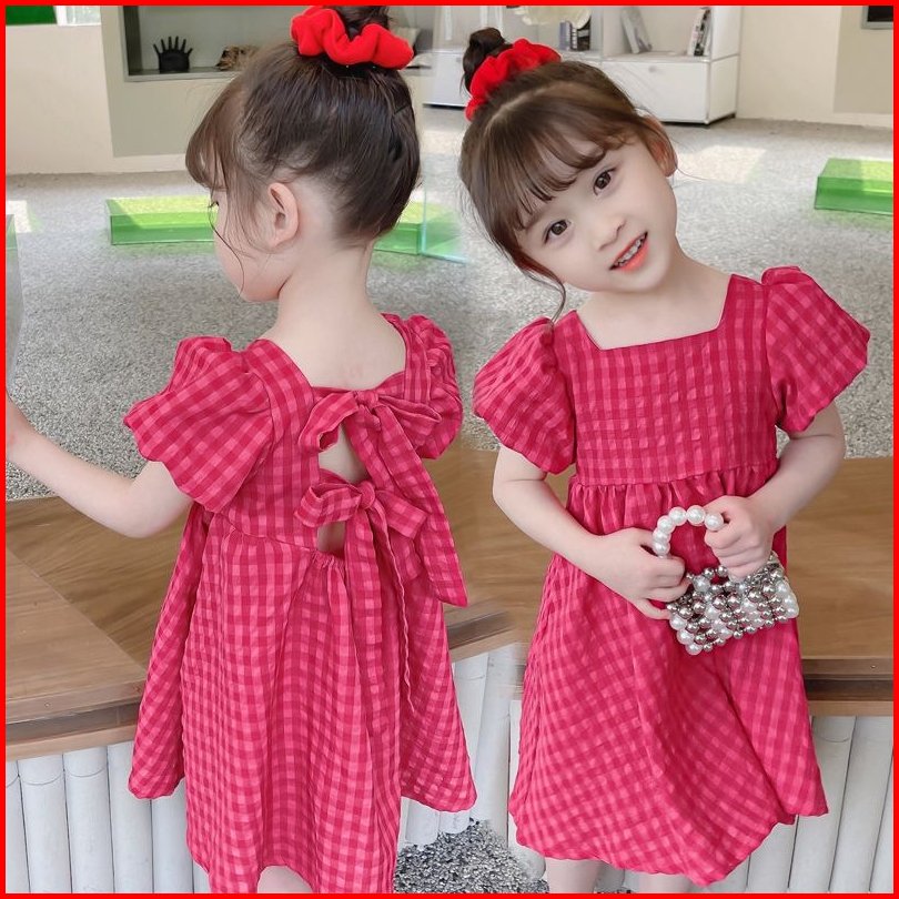 Haasya Kids 1-8 Tahun Gaun Anak Perempuan Gaun Lengan Puff Kupu-kupu Gaun Anak-anak Backless Gaya Putri