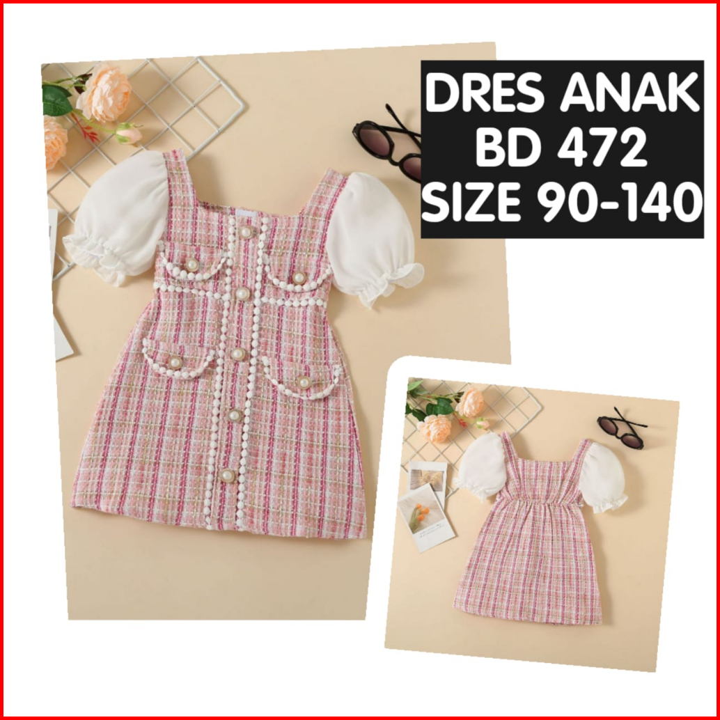 Loli-jkt Bd- 472 Dress Anak Cewek Hounstud Pink Tebal Size 90-140