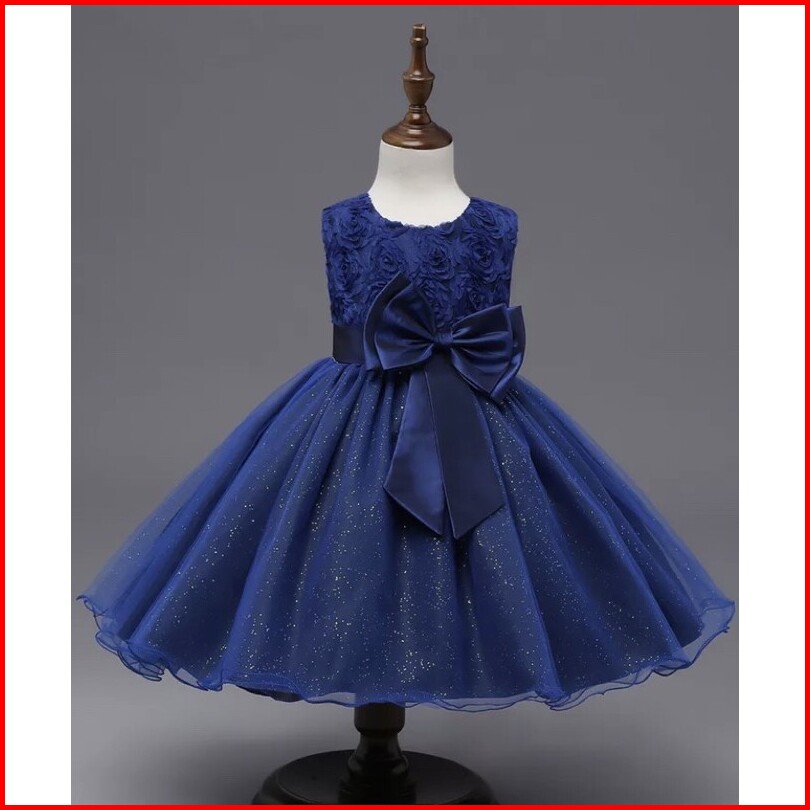 Incessbaby Baju Pesta Ulang Tahun Gaun Anak Perempuan Import Korean Style Mewah 1 2 3 4 5 6 7 Tahun Warna Navy Natal