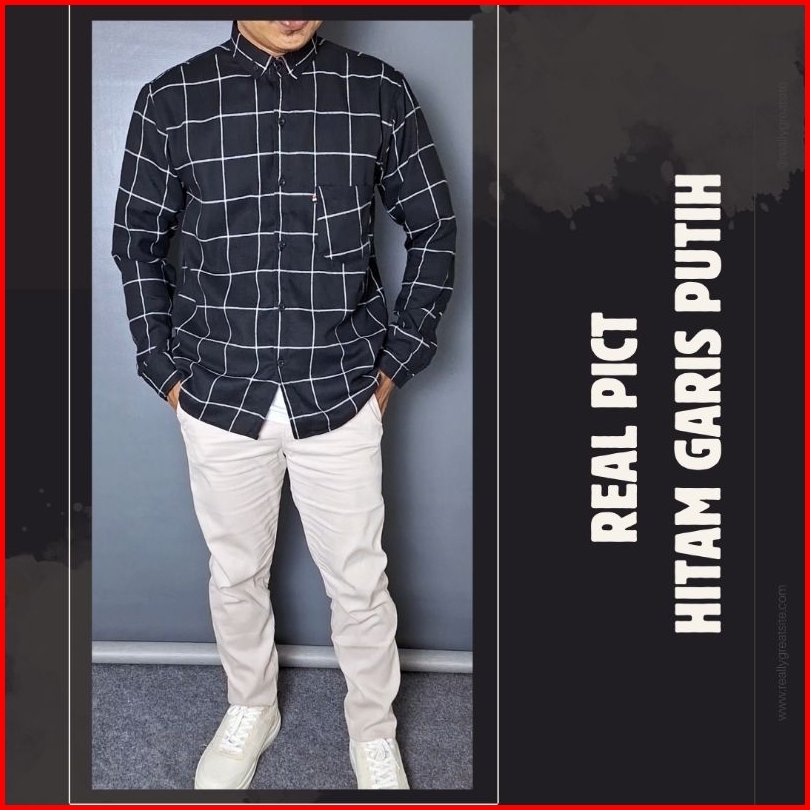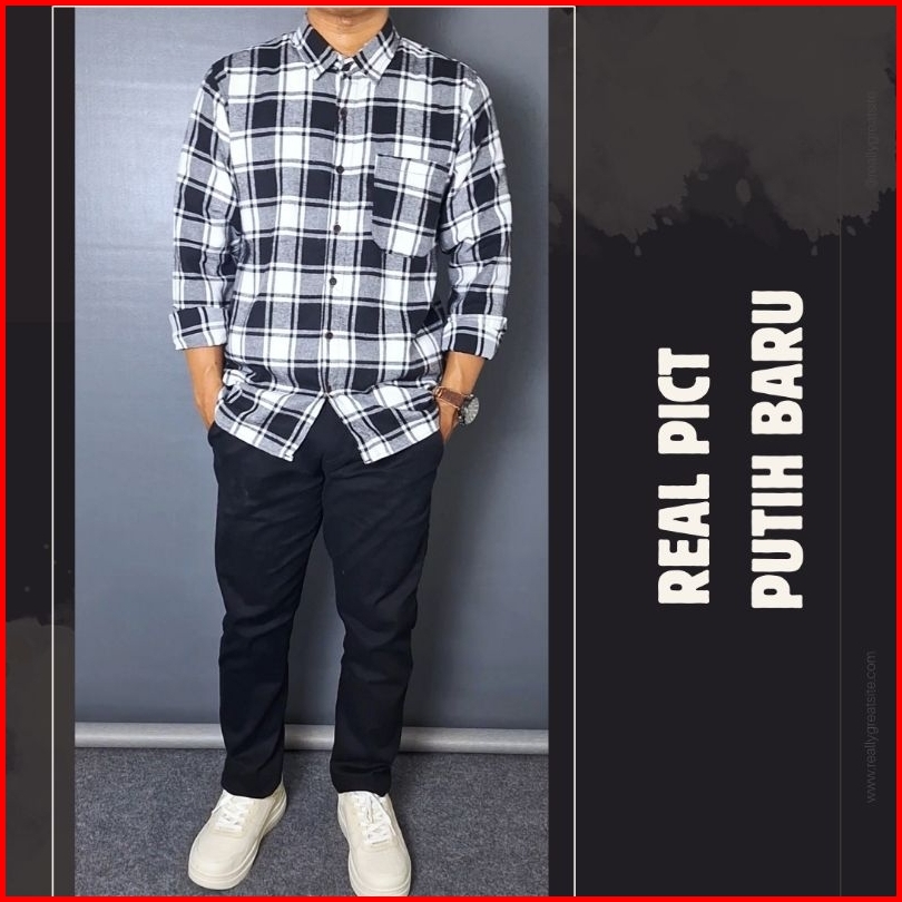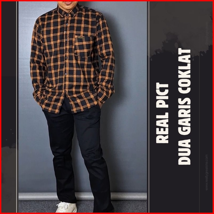 Promo Baju Kemeja Flanel Pria Lengan Panjang Motif Kotak-kotak Casual Terbaru