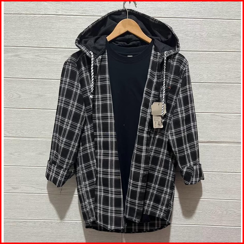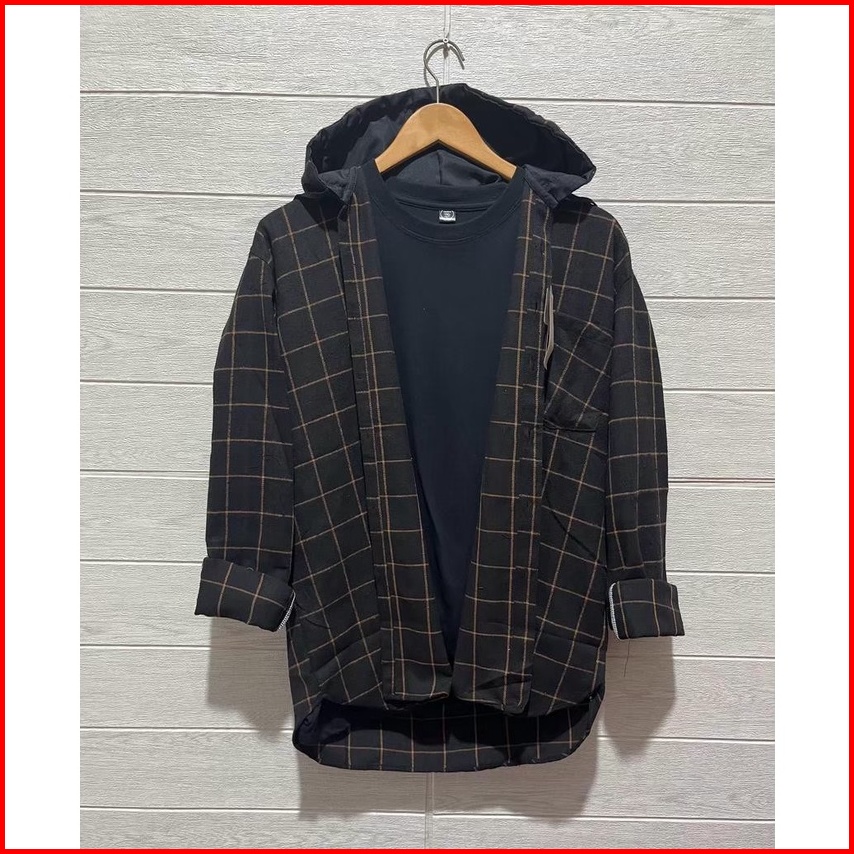 Kemeja Flanel Hoodie Original M L Xl Premium Quality