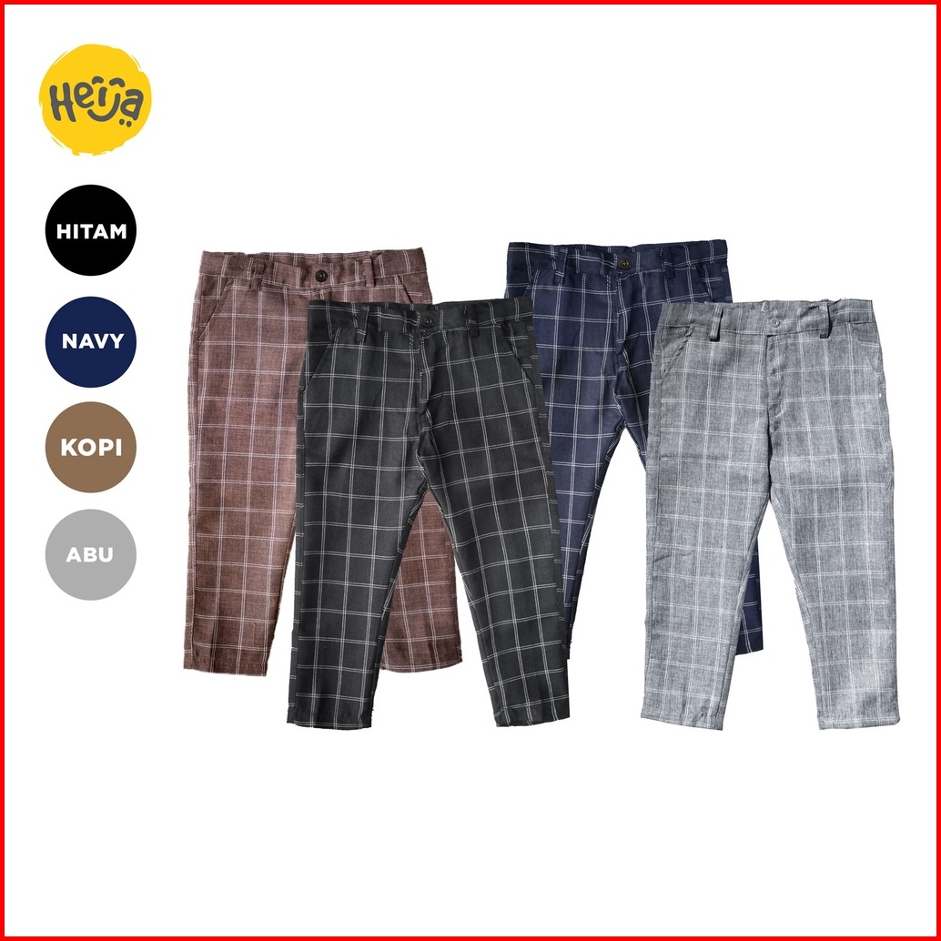 Heija Checky Pants - Celana Anak Chino Panjang Motif Kotak Tartan Hitam Navy Abu Coklat 1-13 Tahun Couple Anak Remaja Ay