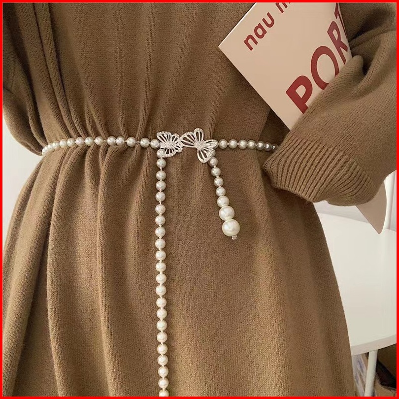 Ikat Pinggang Belt Rantai Slim Model Mutiara Imitasi Fashion Wanita Korea Fashion Womens Belt-lt037