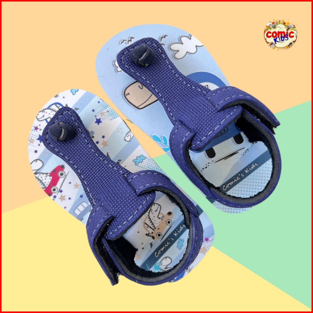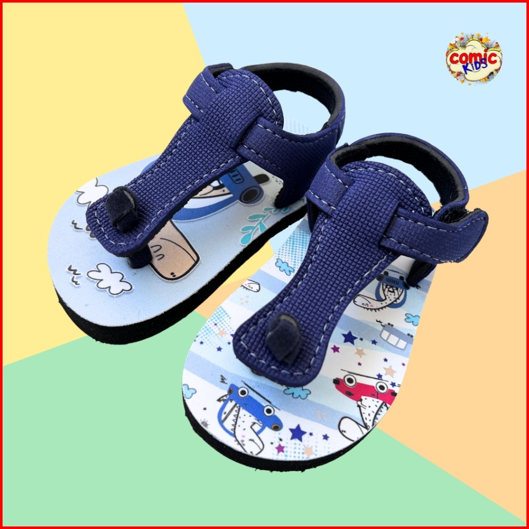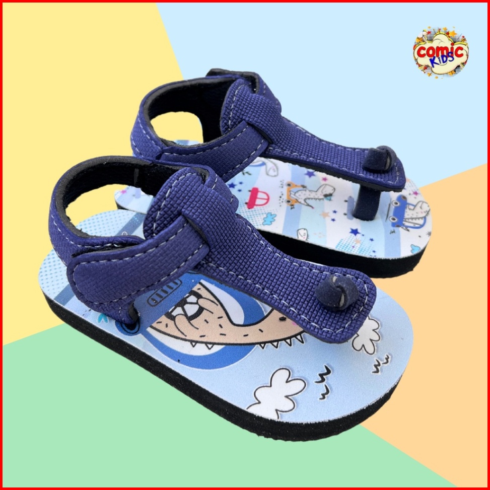 Sepatu Sandal Anak Laki Laki Comickids Sendal Selop Balita Jepit Bayi 1 2 3 Tahun Marz Blue Dino