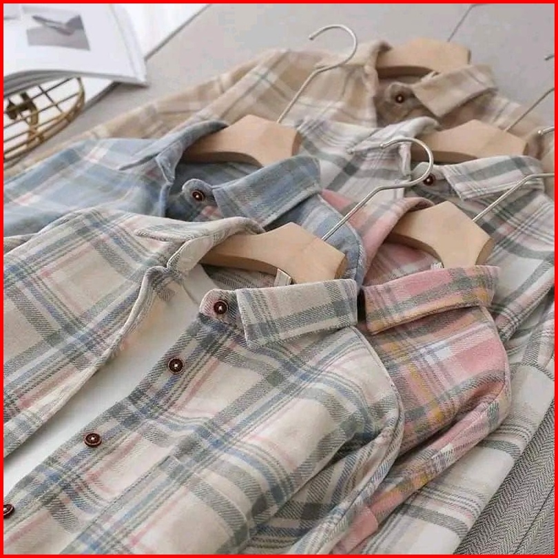 Kemeja Flanel Wanita Lengan Panjang Unisex Kualitas Premium