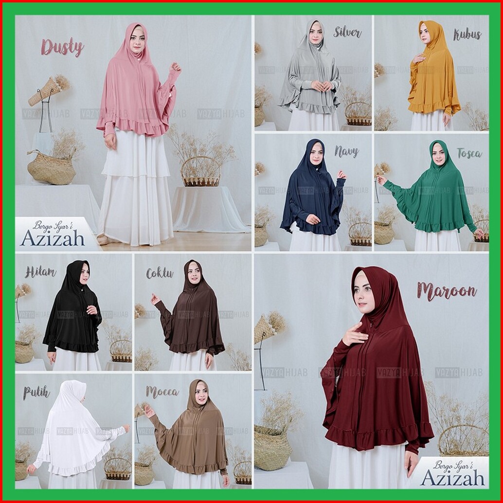 Original Bergo Lengan Azizah By Vazya Hijab Hijab Khimar Syari Ajijah Hitam Marun Silver