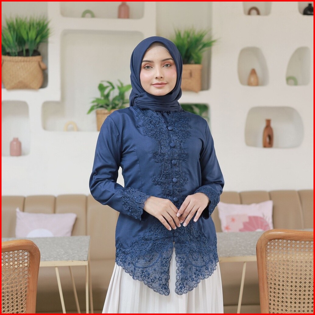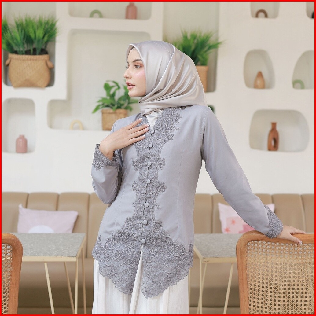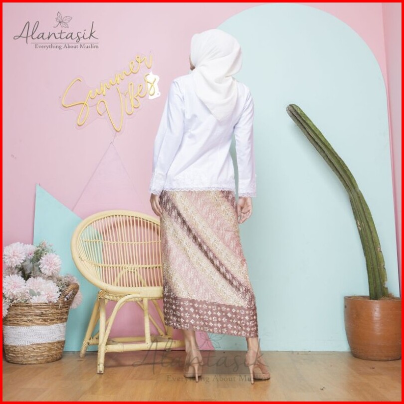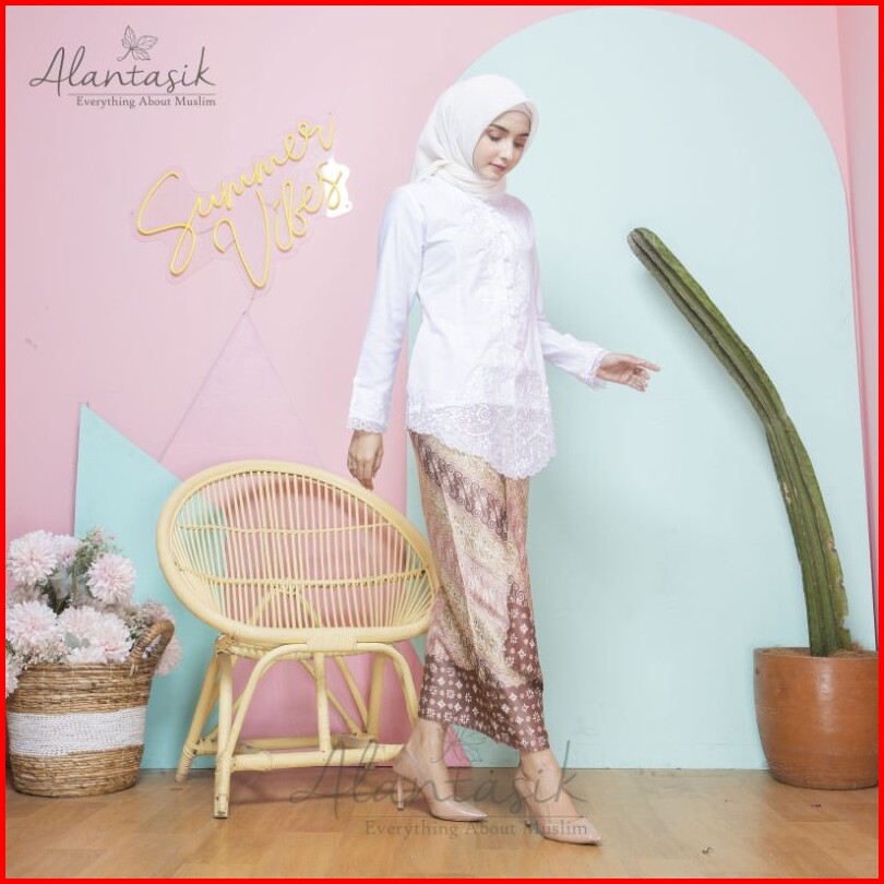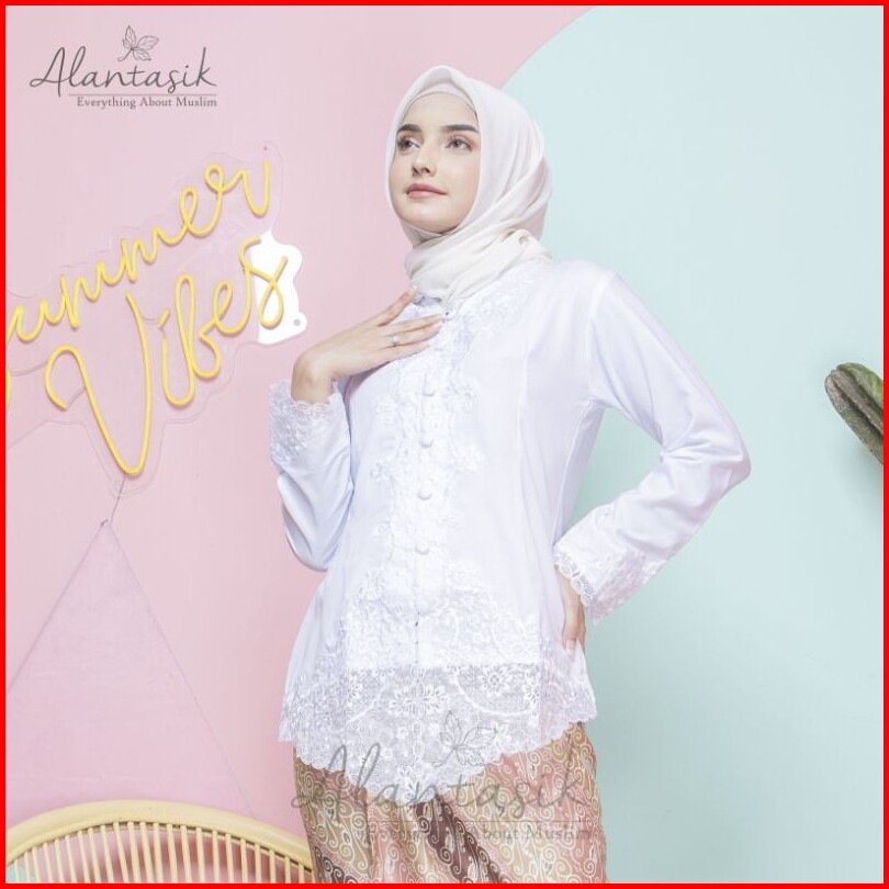 Alantasik -atasan Kebaya Encim Bordir Putih Tangan Panjang Modern Wisuda Kantor Kerja Sulam Senada