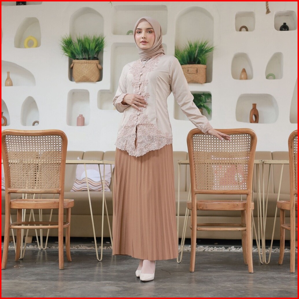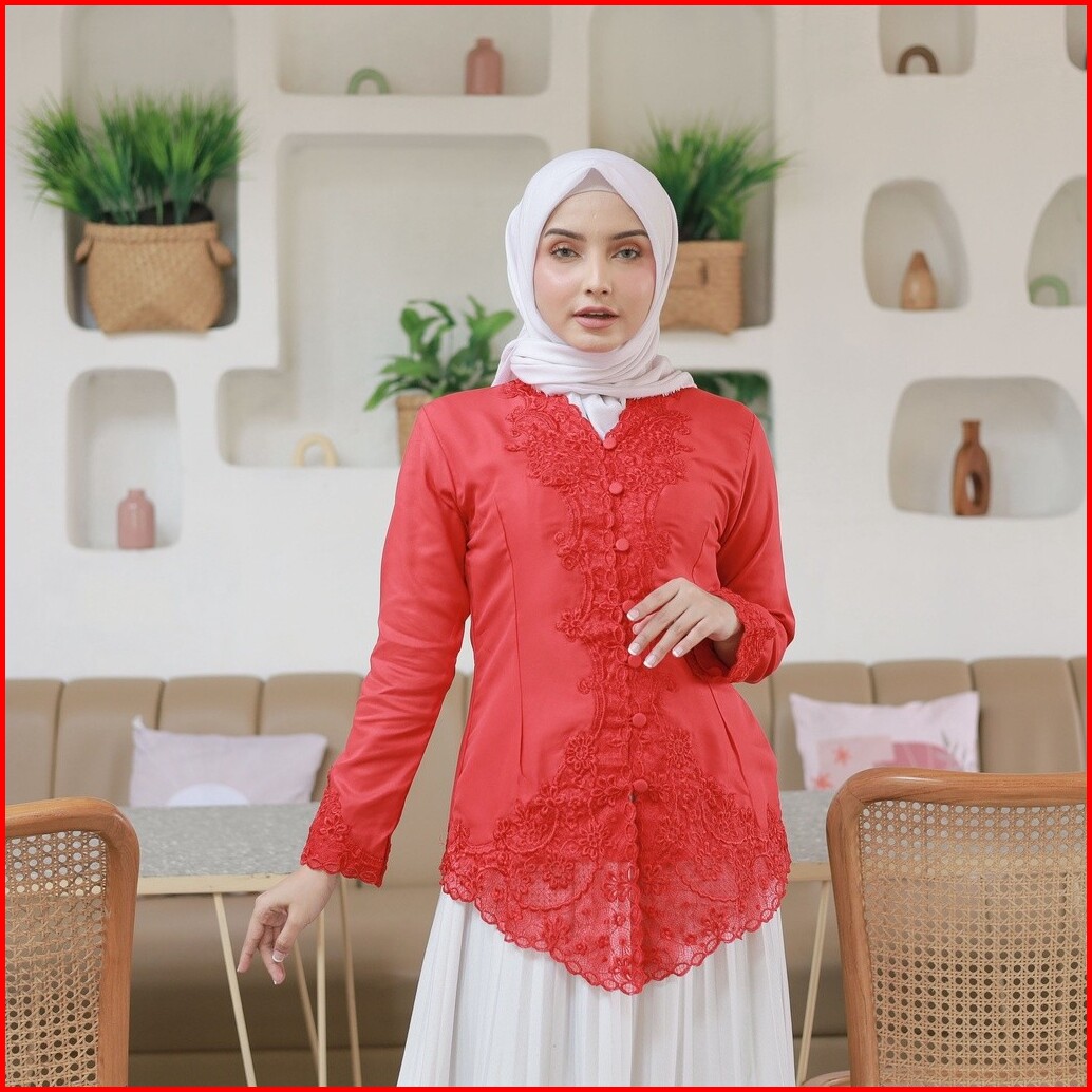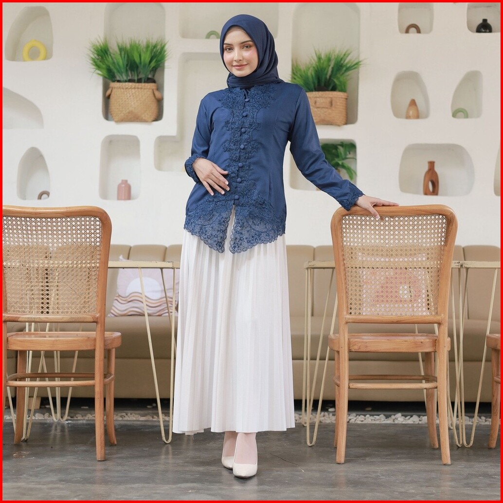 Alantasik -atasan Kebaya Encim Bordir Putih Tangan Panjang Modern Wisuda Kantor Kerja Sulam Senada
