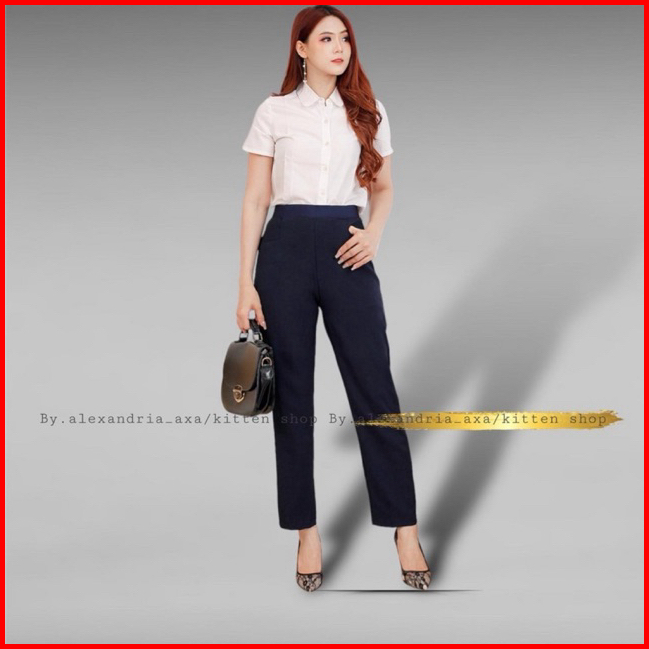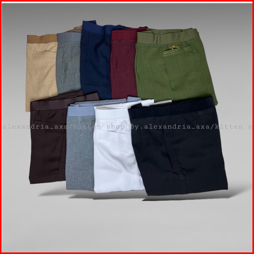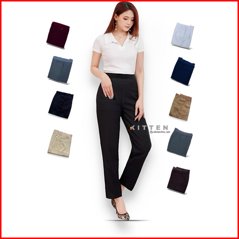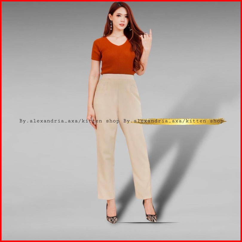 Celana Panjang Bahan Wanita Kerja Pinggang Karet Highwaist Bahan Dasar Kain Wol Gracela Tebal Melar