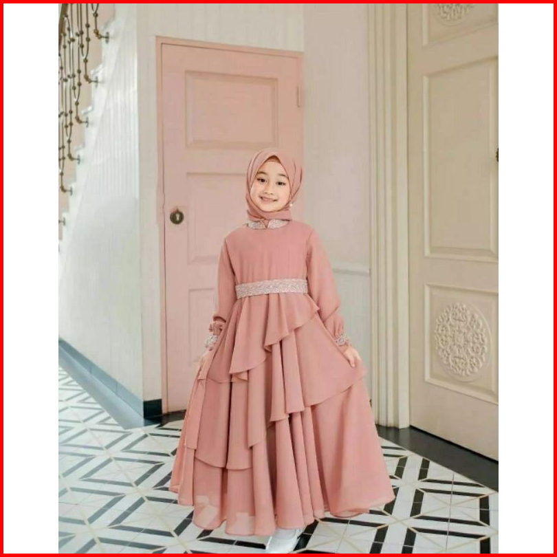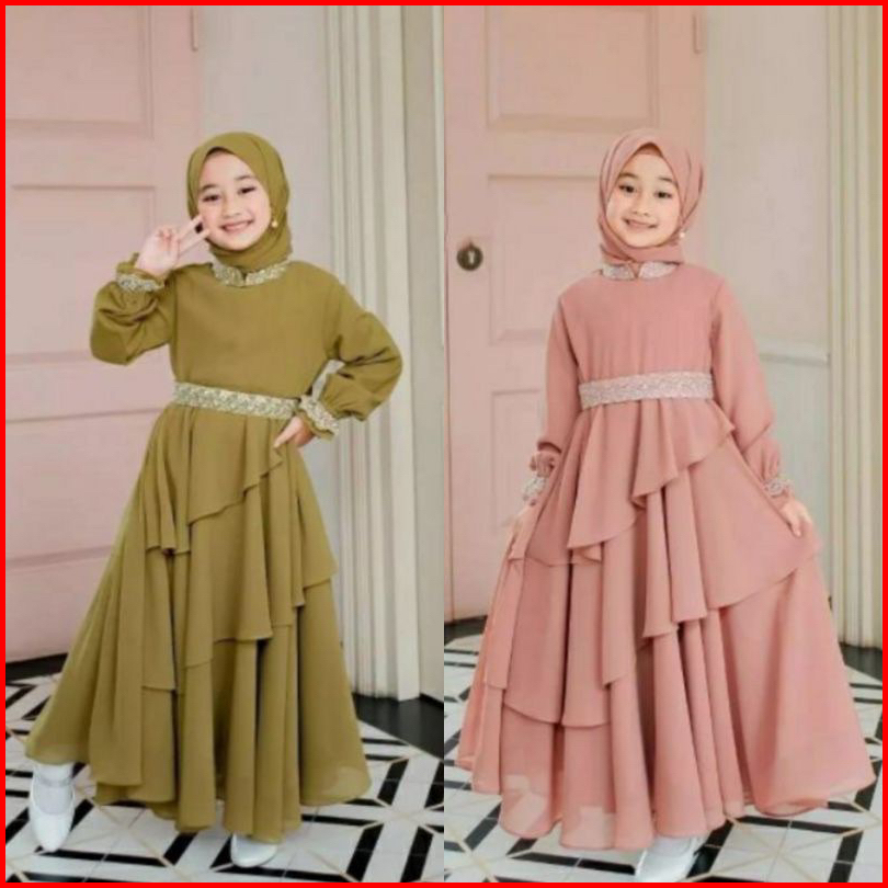 Gamis Anak Usia 5-13 Tahun Mikayla Kids Set Pasmina Gamis Anak Lebaran Terlaris