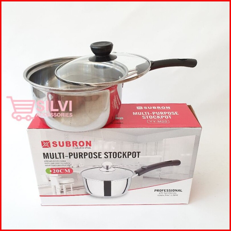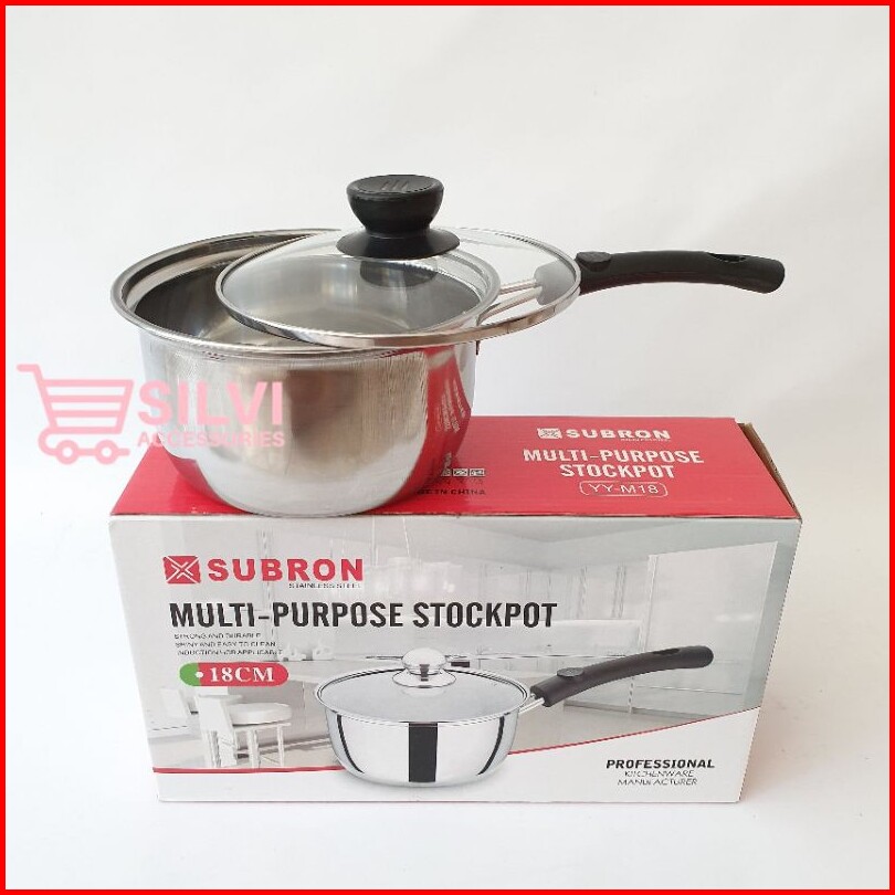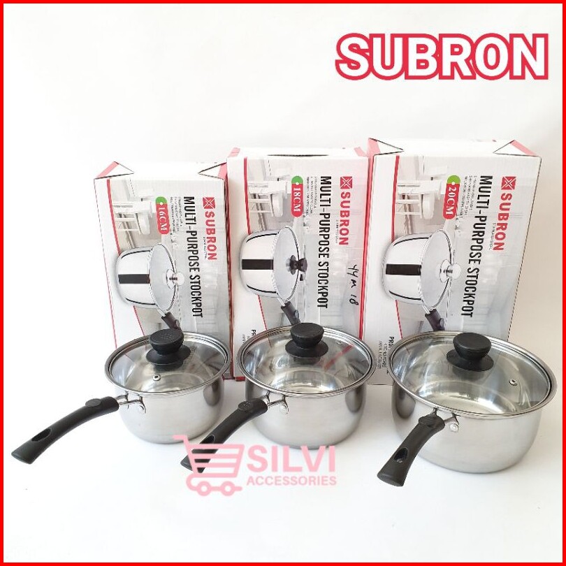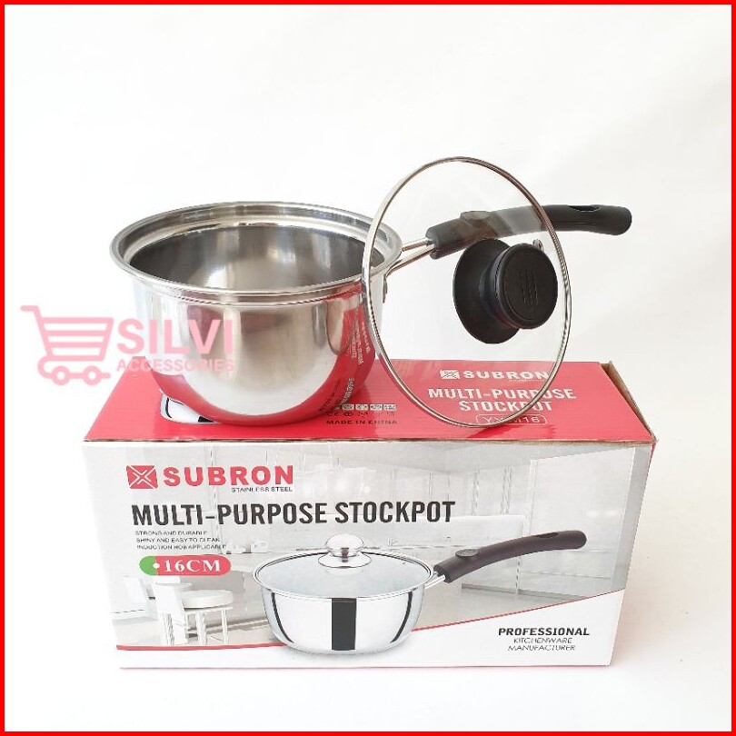 Panci Susu Stainless Subron Milk Pot Mpasi 16cm 18cm 20cm Yy-m Tutup Kaca