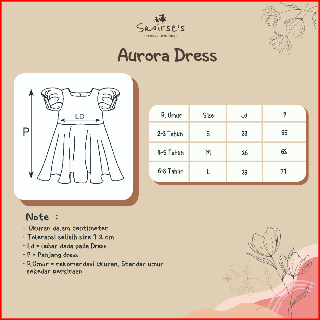 Saoirse S Aurora - Dress Anak Gaun Princess Cinderella Korean Style Usia 2-8 Tahun Lebaran Birthday