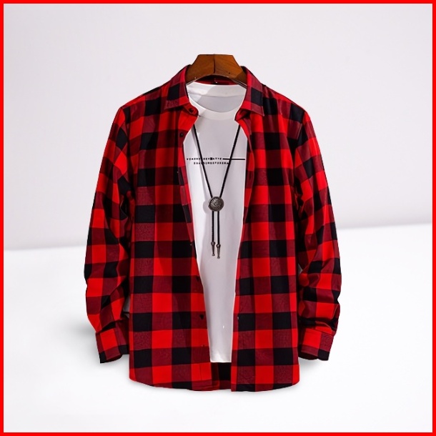 Kemeja Kotak Cowok Hem Flanel Pria Lengan Panjang Kemeja Flannel Merah Pria Distro Original