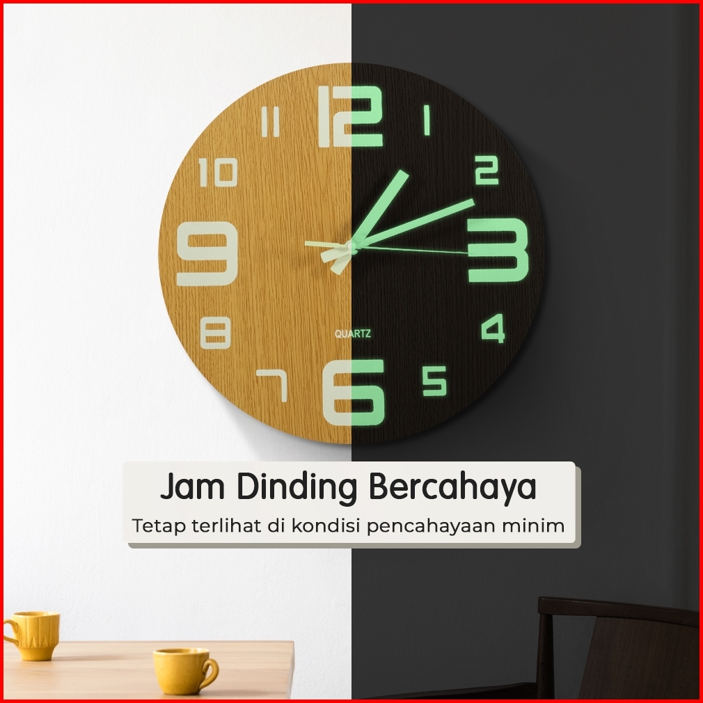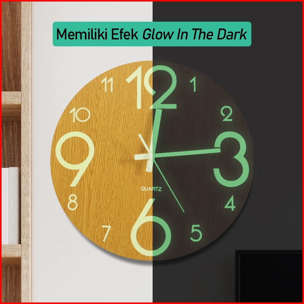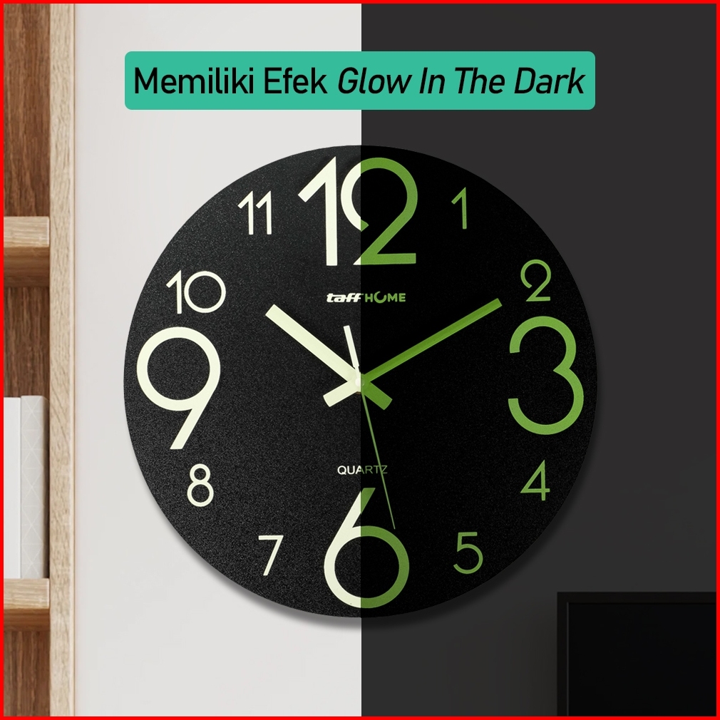 Taffhome Jam Dinding Bulat Quartz Creative Design Luminous Glow In The Dark Diameter 30cm Jam Dinding Mesin Senyap Jam D