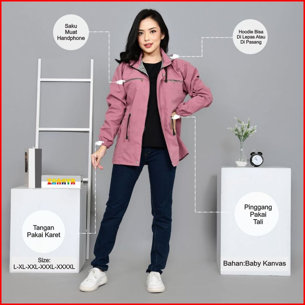 Jaket Parka Wanita Big Size Size L Xl Xxl 3xl 4xl Bahan Kanvas 10 Warna