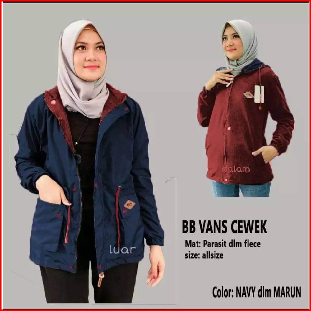 Jaket Parka Wanita Bolak Balik Jaket Parasut Cewek Size L Xl