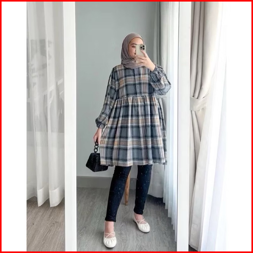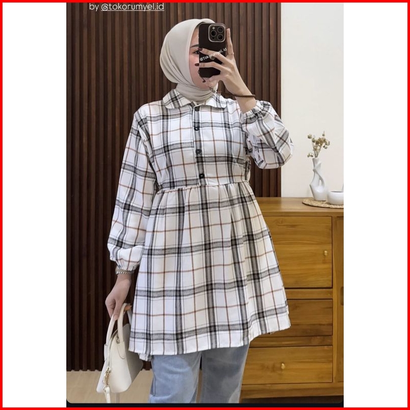Meelabel Tunik Flanel Wanita Premium Atasan Flanel Ruffle Wanita Kemeja Rempel Flanel
