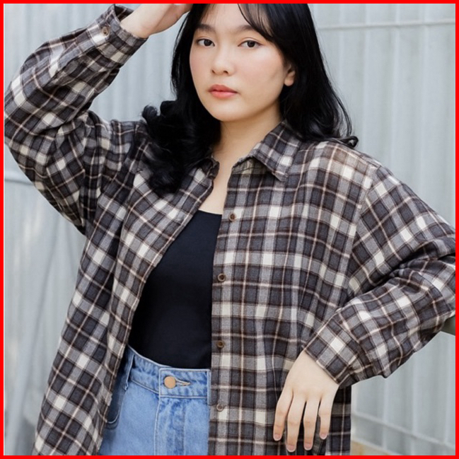Hauline - Kemeja Flannel Lengan Baloon Oversize