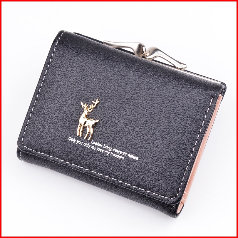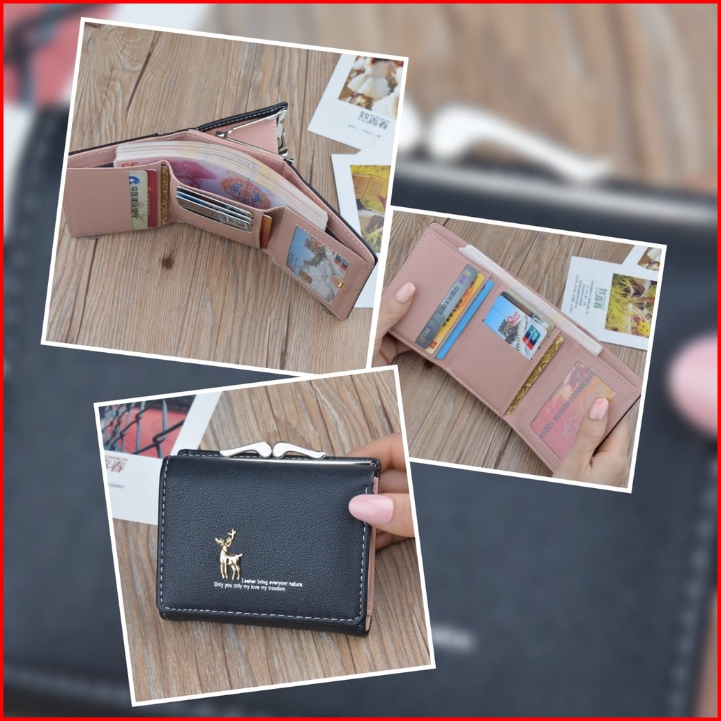 Dompet Lipat Wanita Kecil Kulit Hitam Guada Wa414b5 Korea Mini Slot Kartu Uang Koin Premium Fashion Batam Branded Remaja
