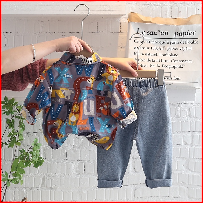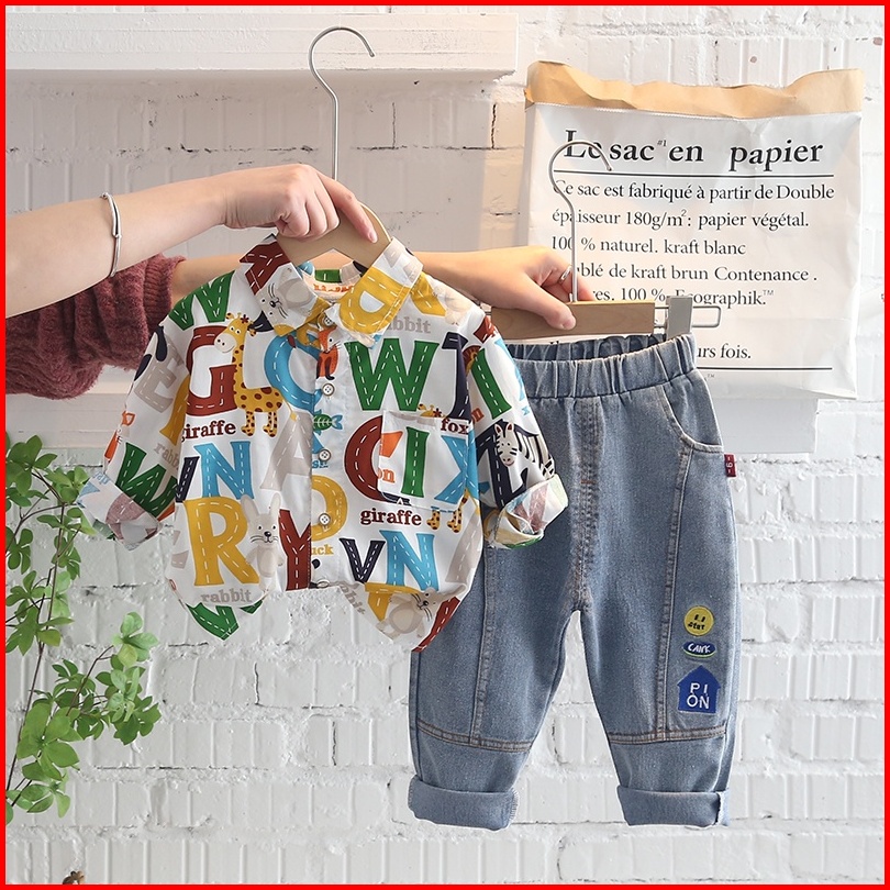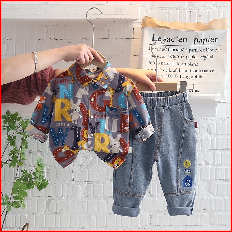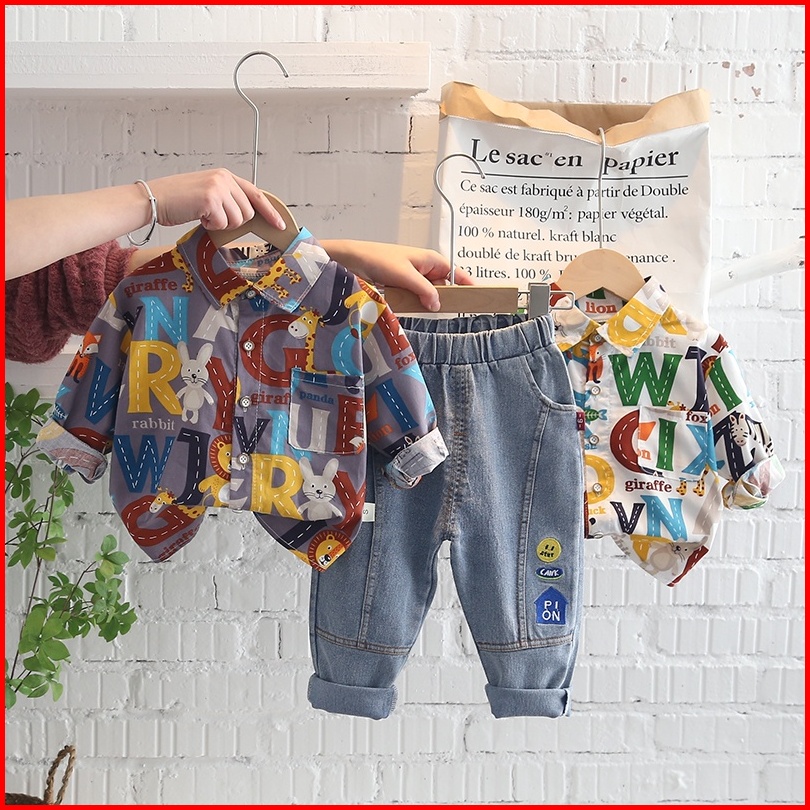 Setelan Kemeja Anak Laki Laki Import Kemeja Anak Cowok Impor Fashion Anak Laki Laki Celana Panjang Denim Fashion Import