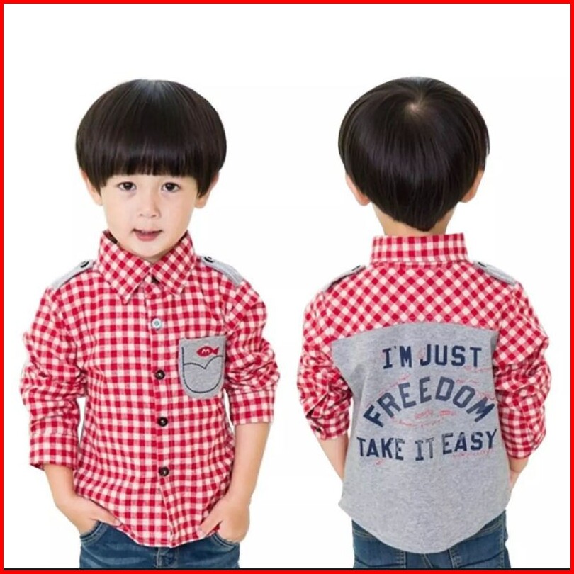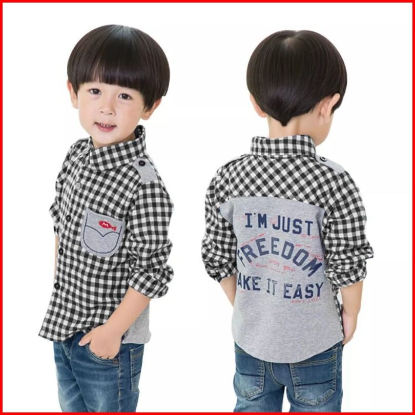 Kemeja Anak Laki-laki Model Cantik Kombinasi Kaos Tangan Panjang 3th-10th