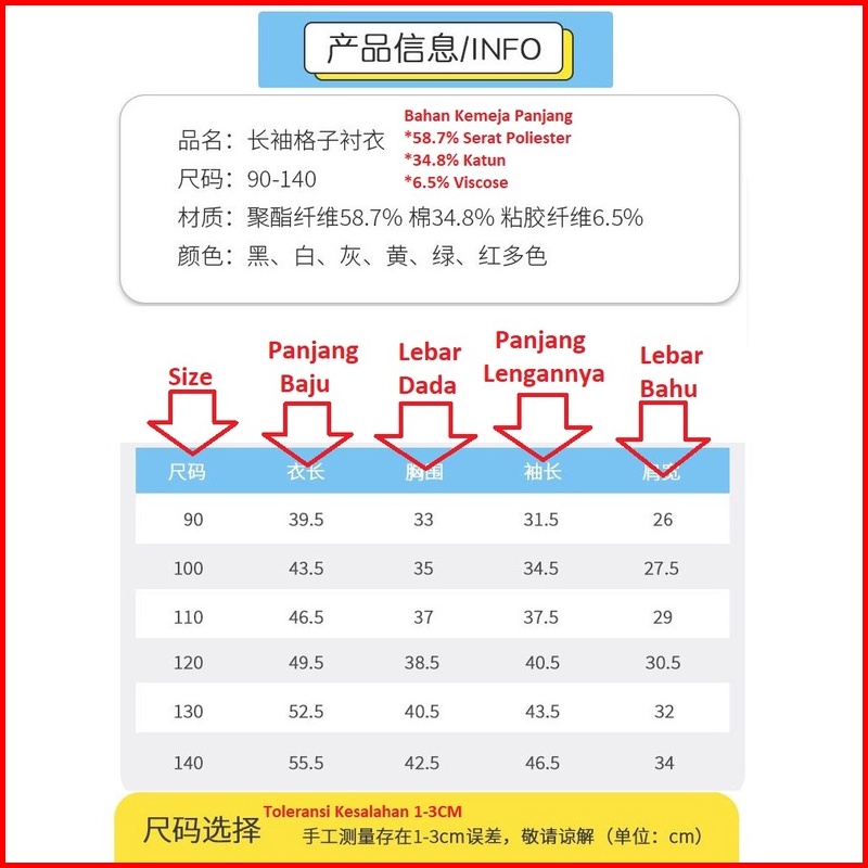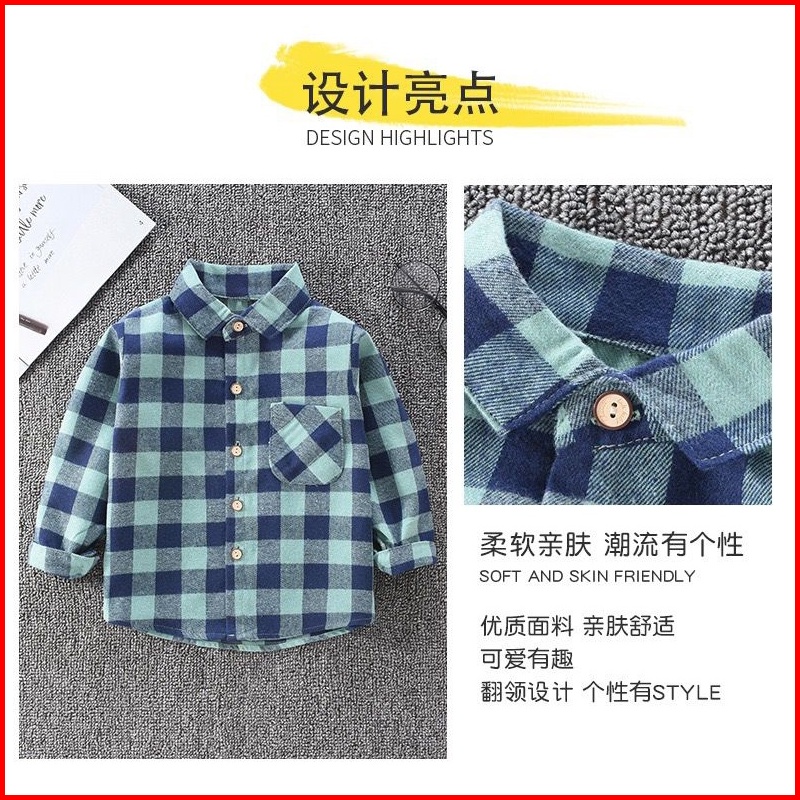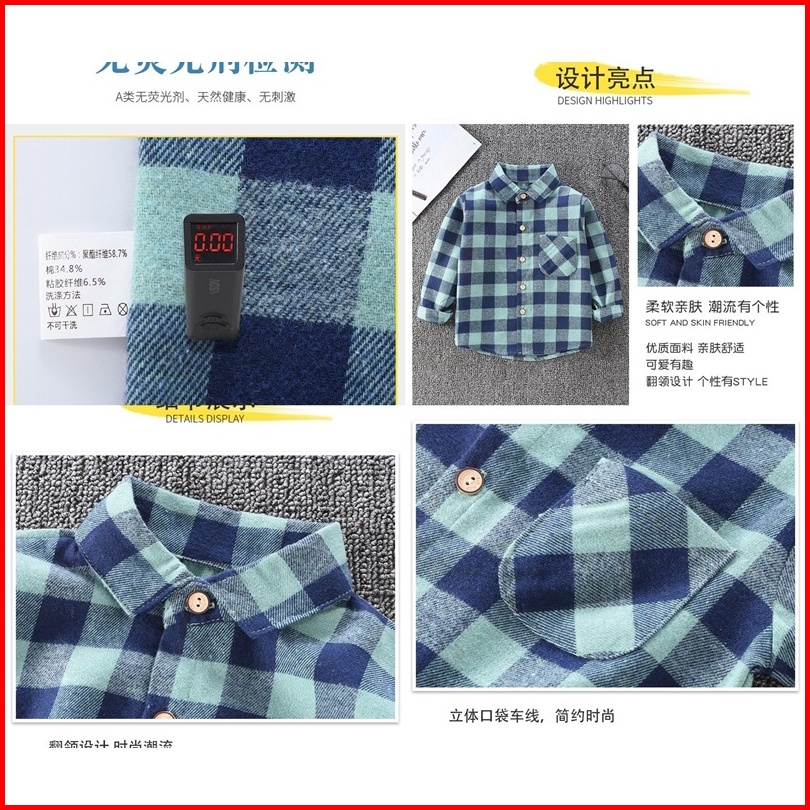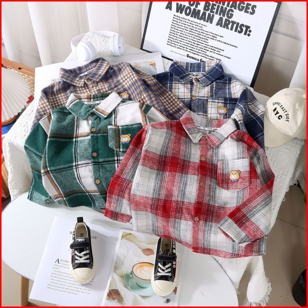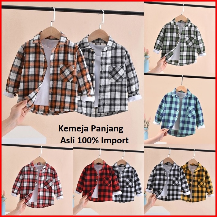 Atasan Kemeja Panjang Anak Kotak-kotak Import 0 - 10 Tahun