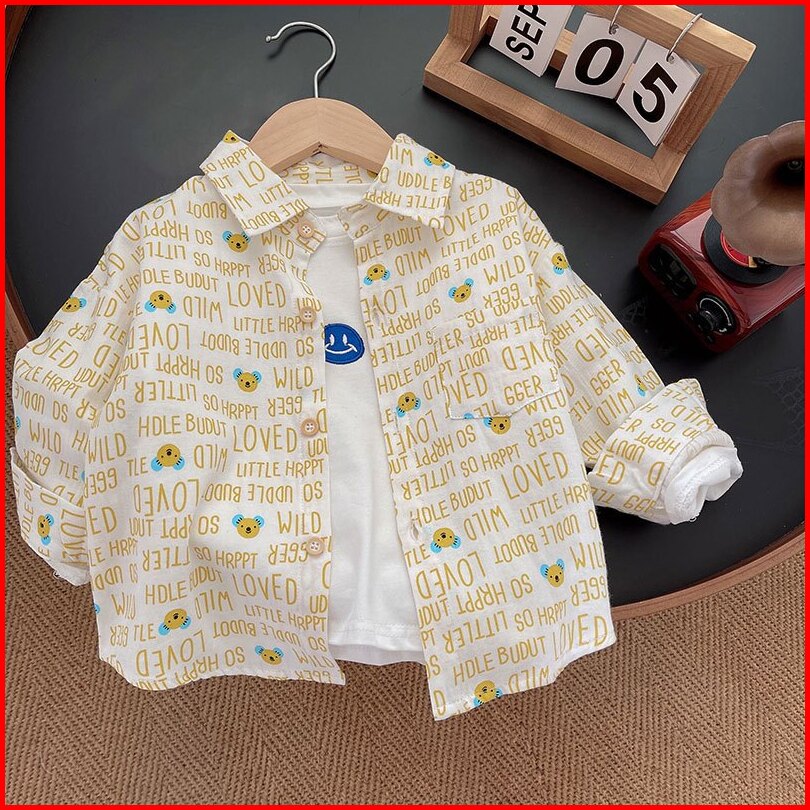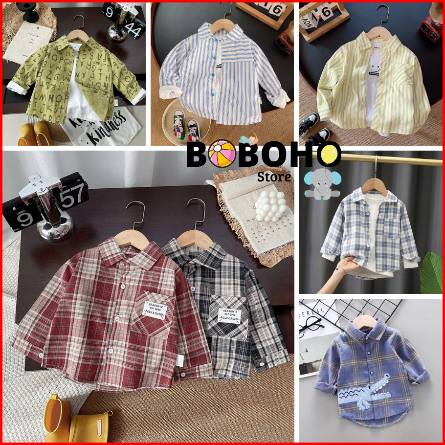Boboho - Kemeja Anak Laki-laki Lengan Panjang Kemeja Katun Anak Baju Katun Anak Cowok Part 1