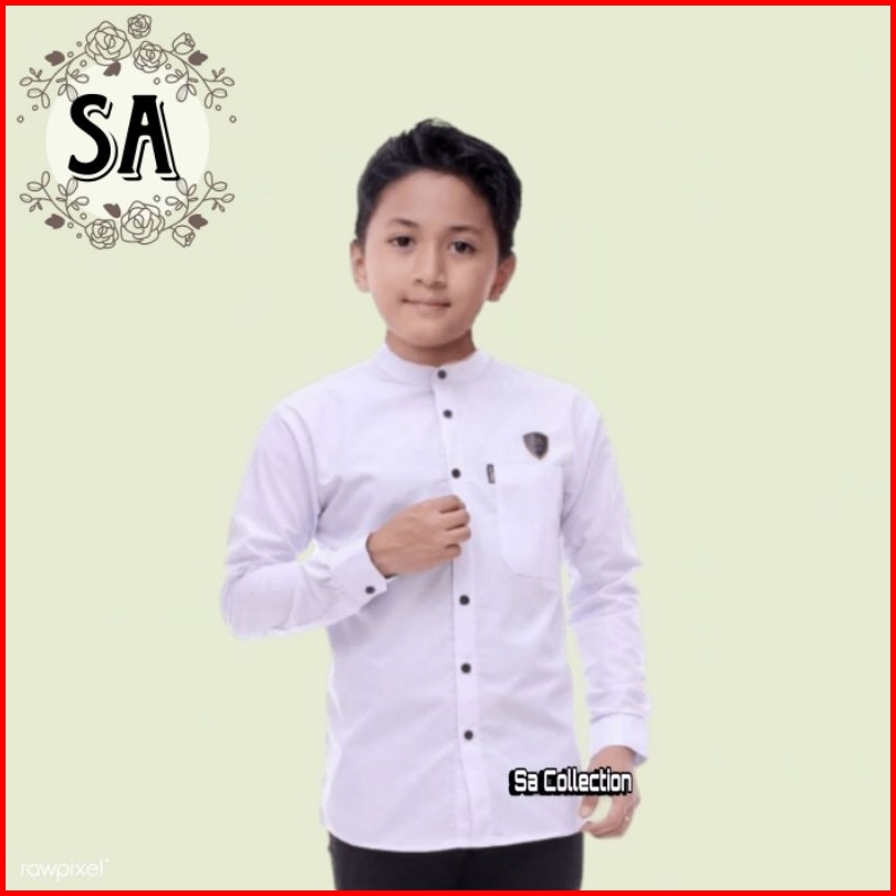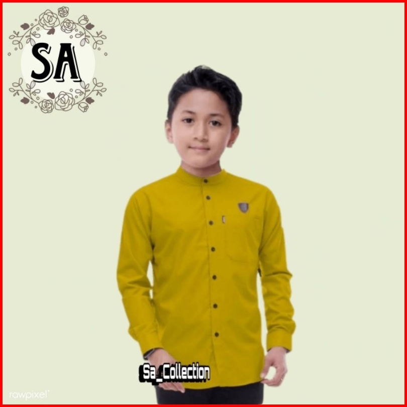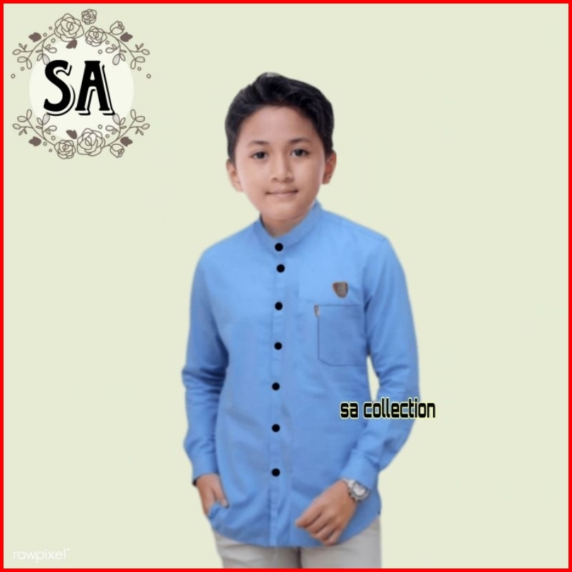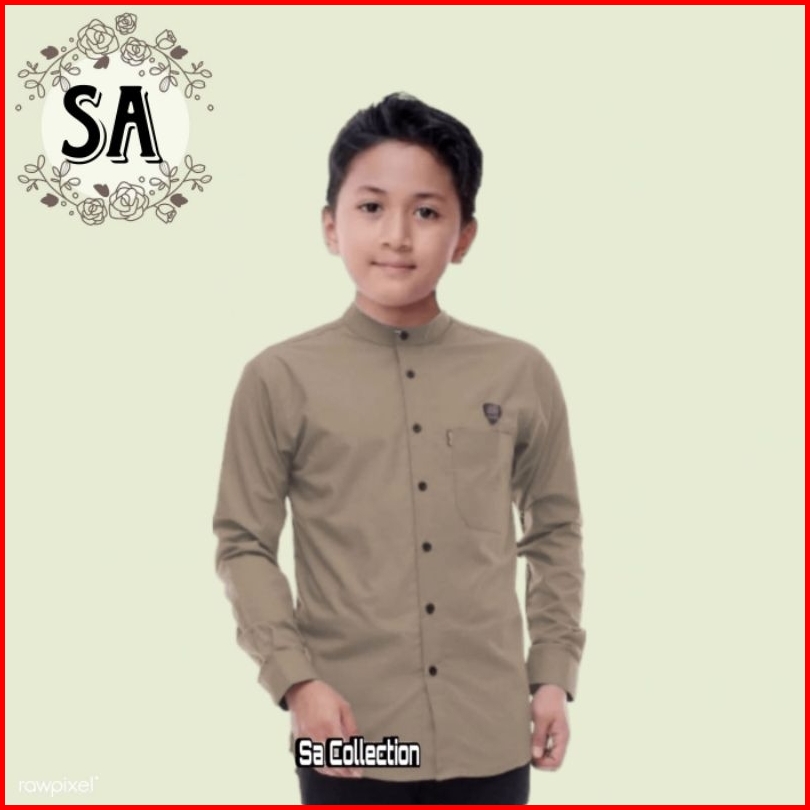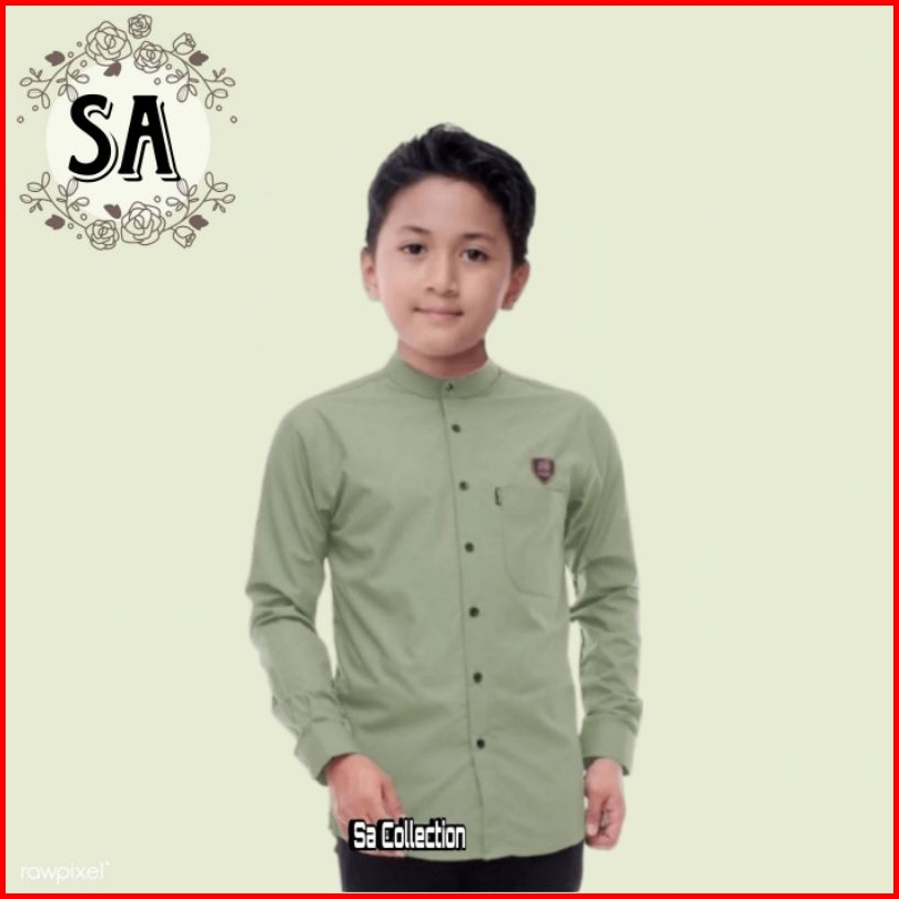 Baju Koko Anak Tanggung Laki Laki Polos Sage Lengan Kancing Kemeja Koko Anak Panjang Baju Anak Laki Laki