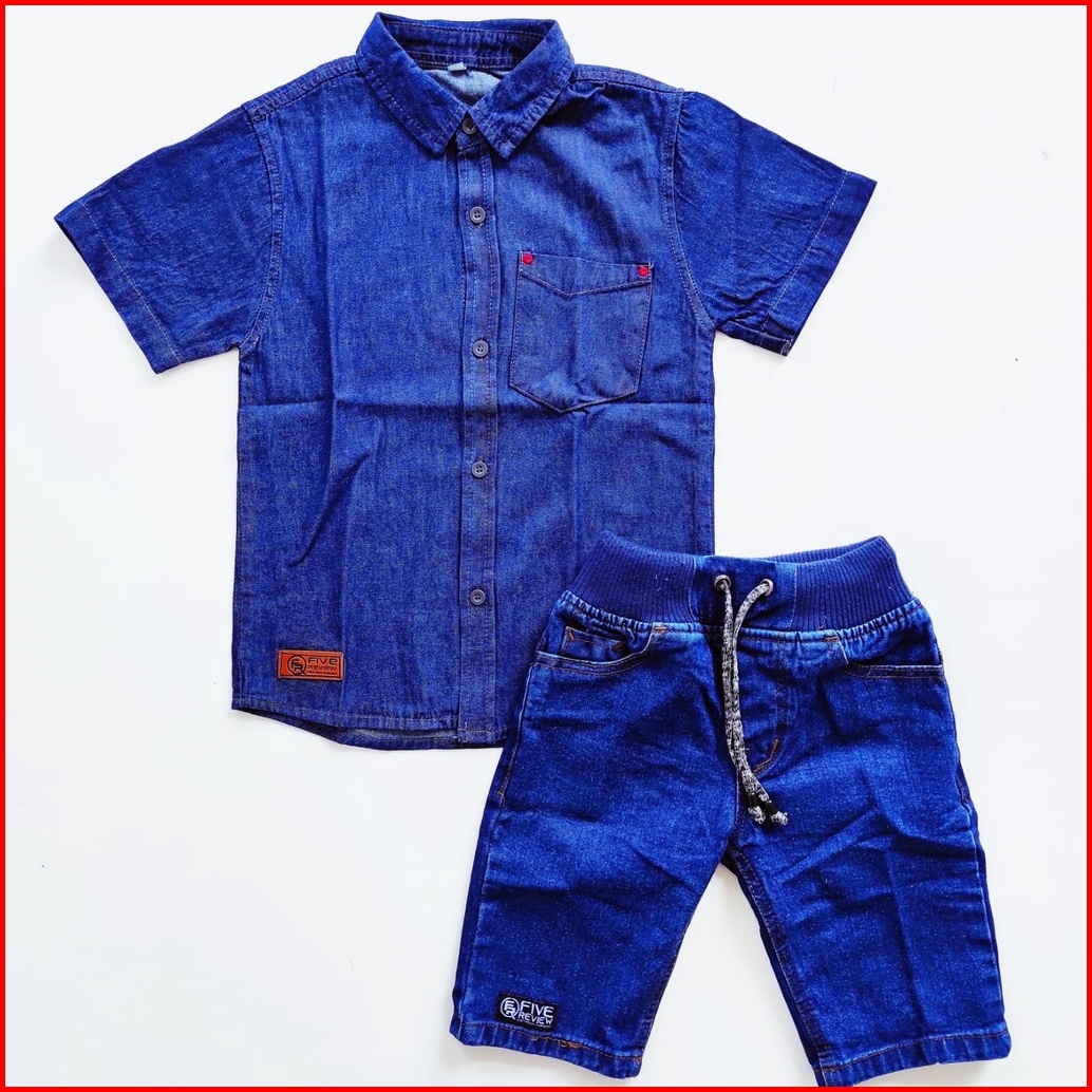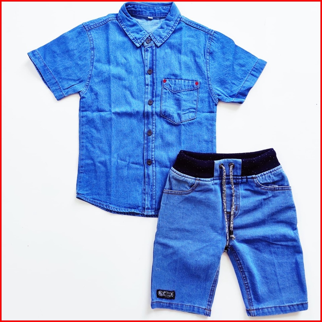 Setelan Kemeja Jeans Anak Laki Laki Usia 3-12 Tahun Kemeja Anak Jeans Denim Kualitas Premium Dan Paling Laris