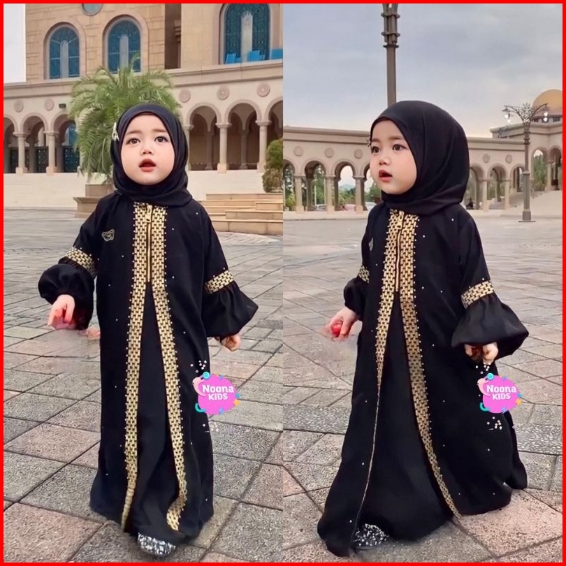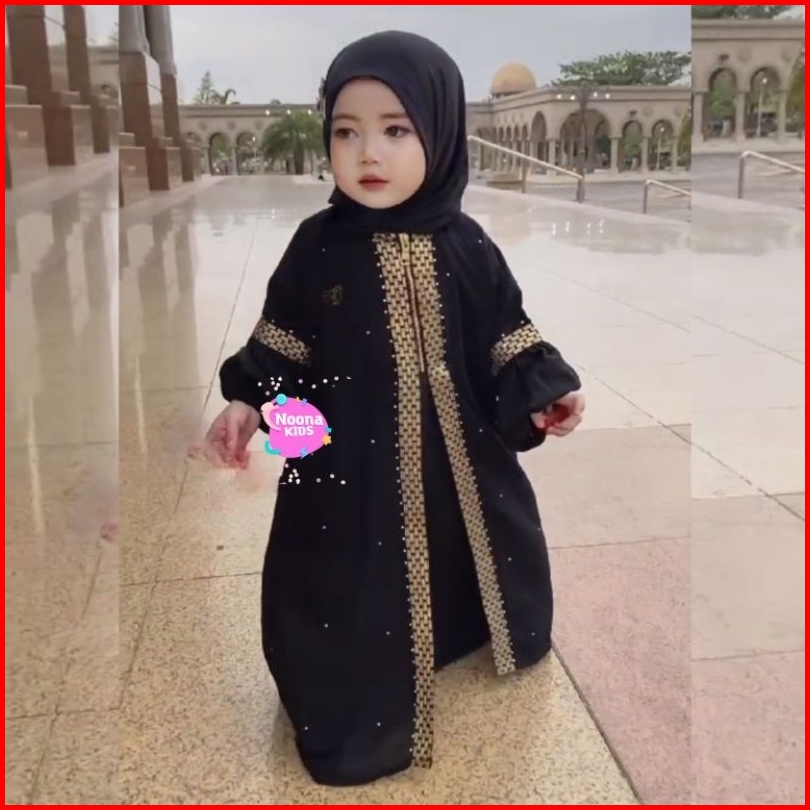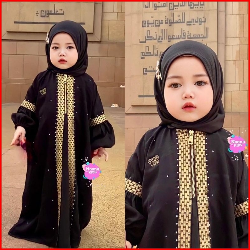 Noona Kids 1-14 Tahun Dress Anak Perempuan Gamis Anak Abaya Anak Busana Muslim Anak Abaya 824 Ziper Renda Bata