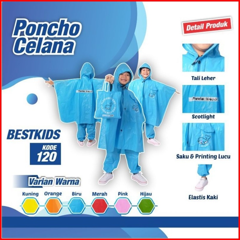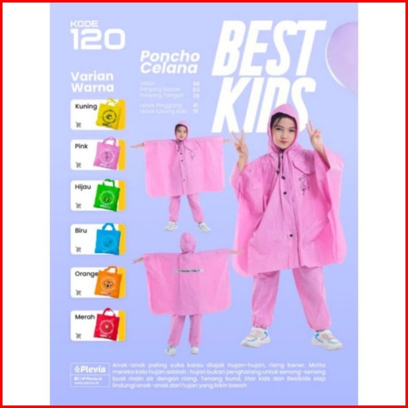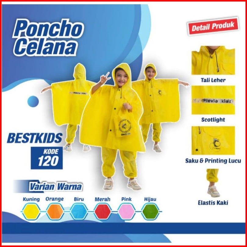 Jas Hujan Anak Poncho Celana Best Kids 120 Plevia Umur 4-6thn - Mantel Mantol Anak Lucu Ponco Celana