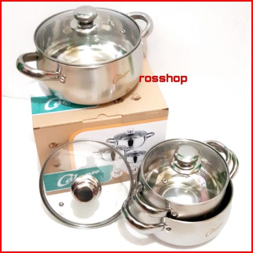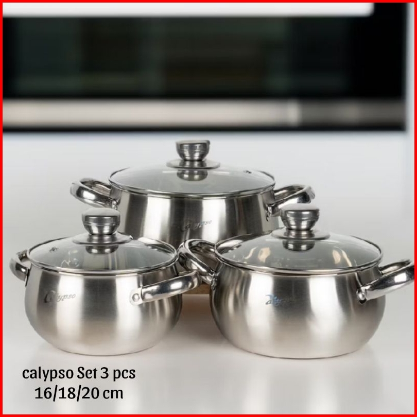 Panci Soup Labu Panci Set 3 Pcs Calypso Stainless Steel Panci Labu Set 3 Pcs 16 18 20 Cm