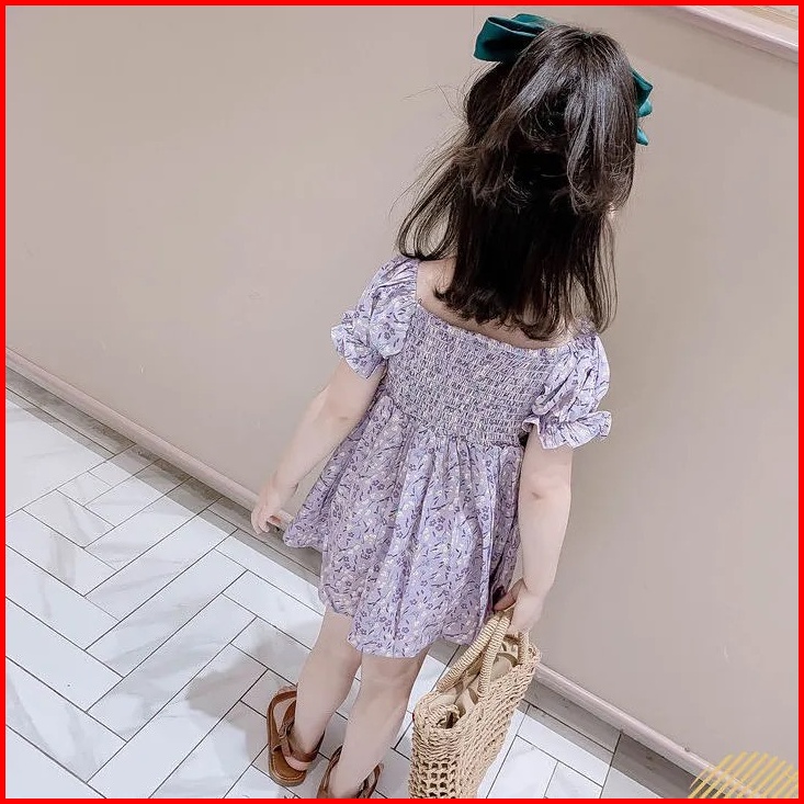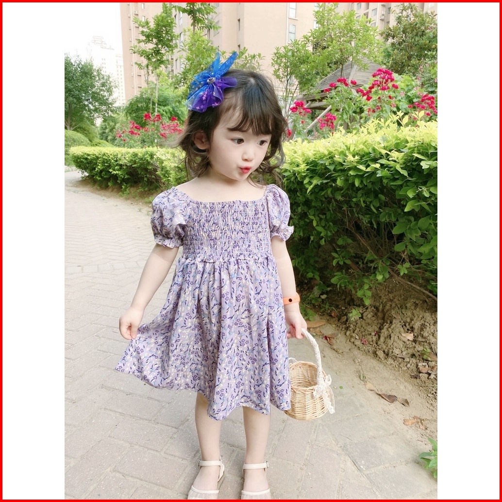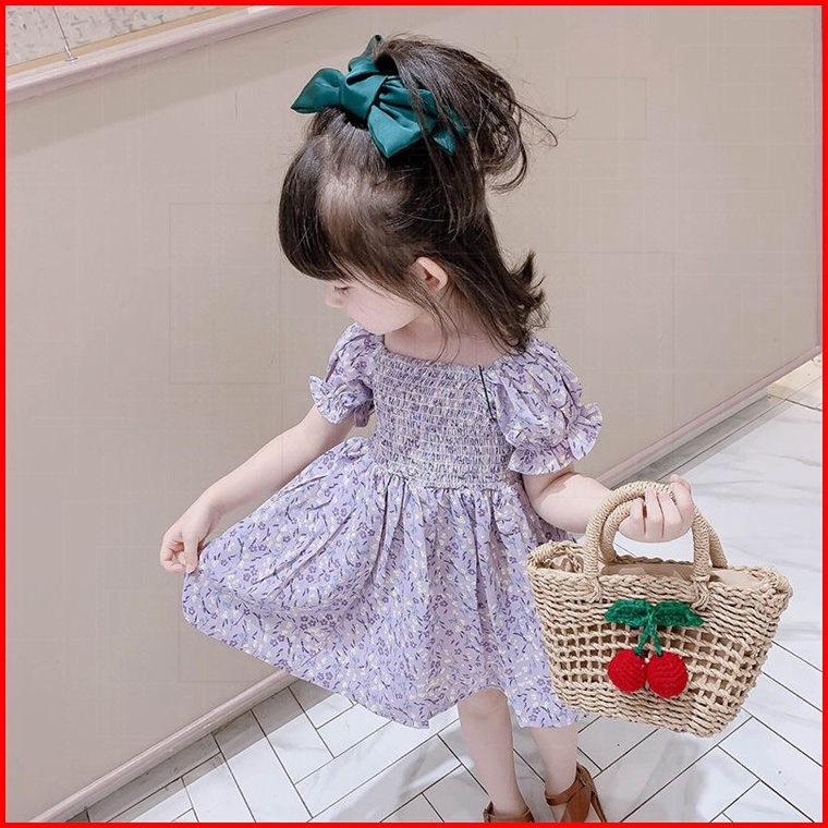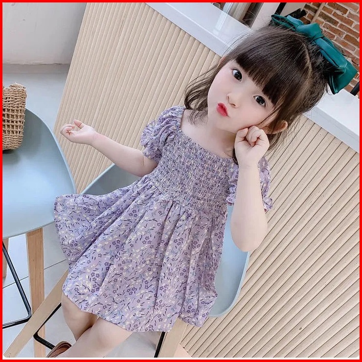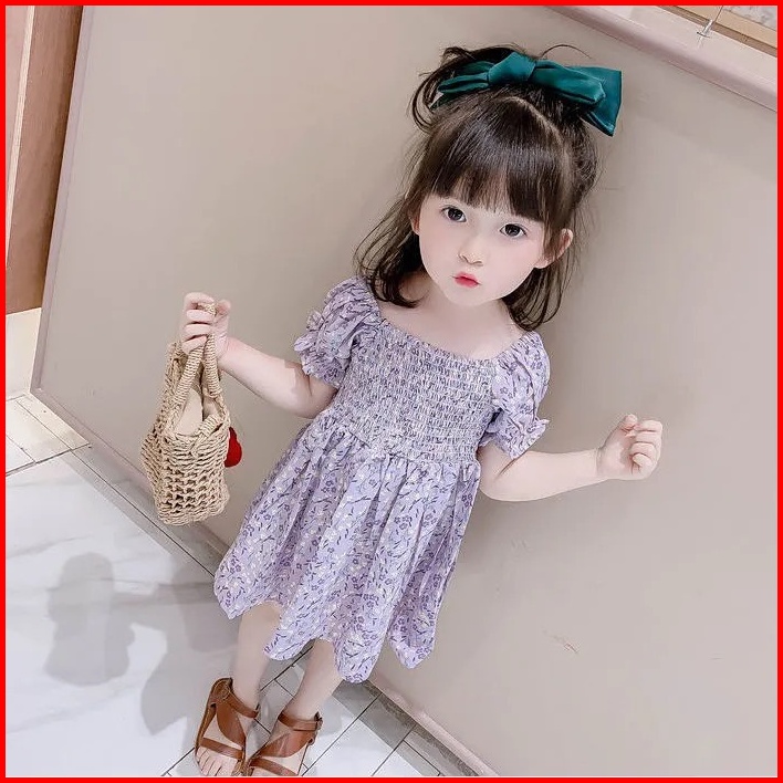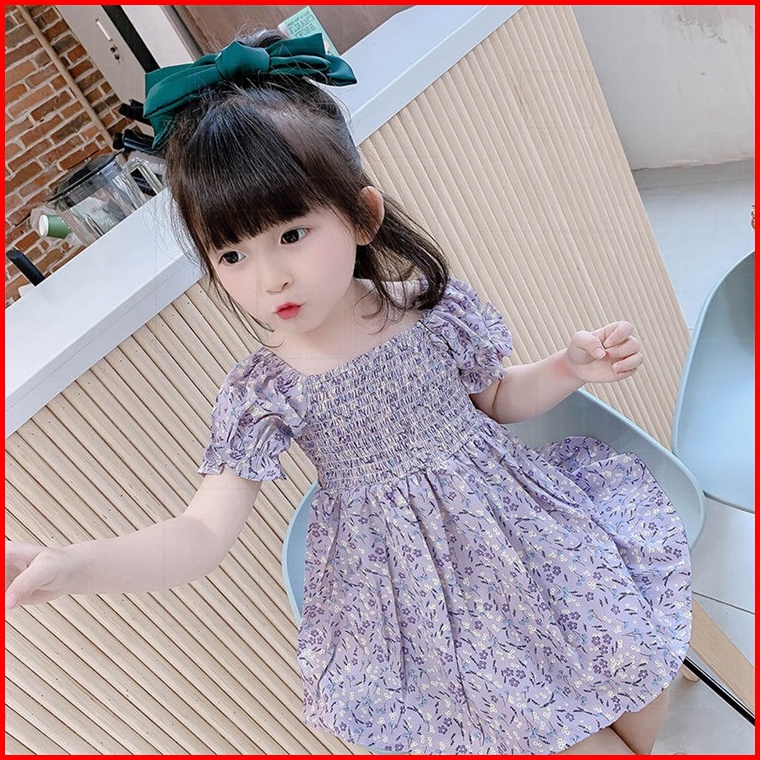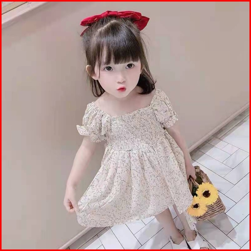 Haasya Kids 2-6 Tahun Pakaian Anak-anak Gadis Gaun Lengan Pendek Anak-anak Rok Putri Bunga