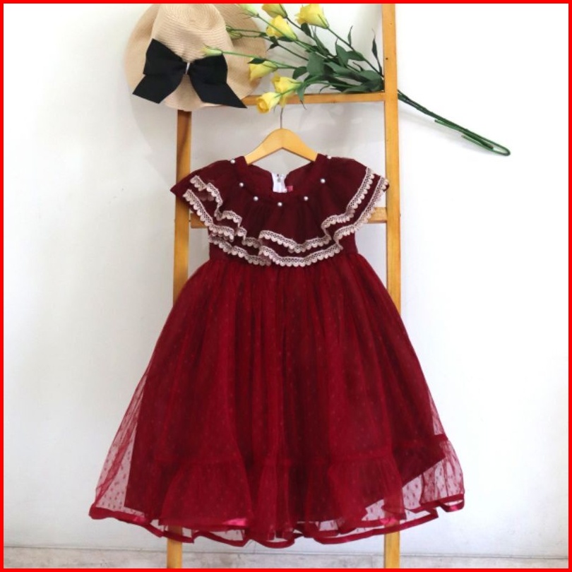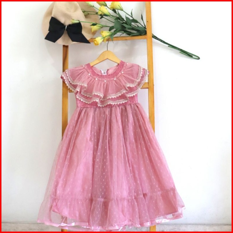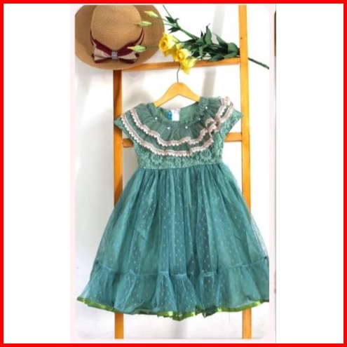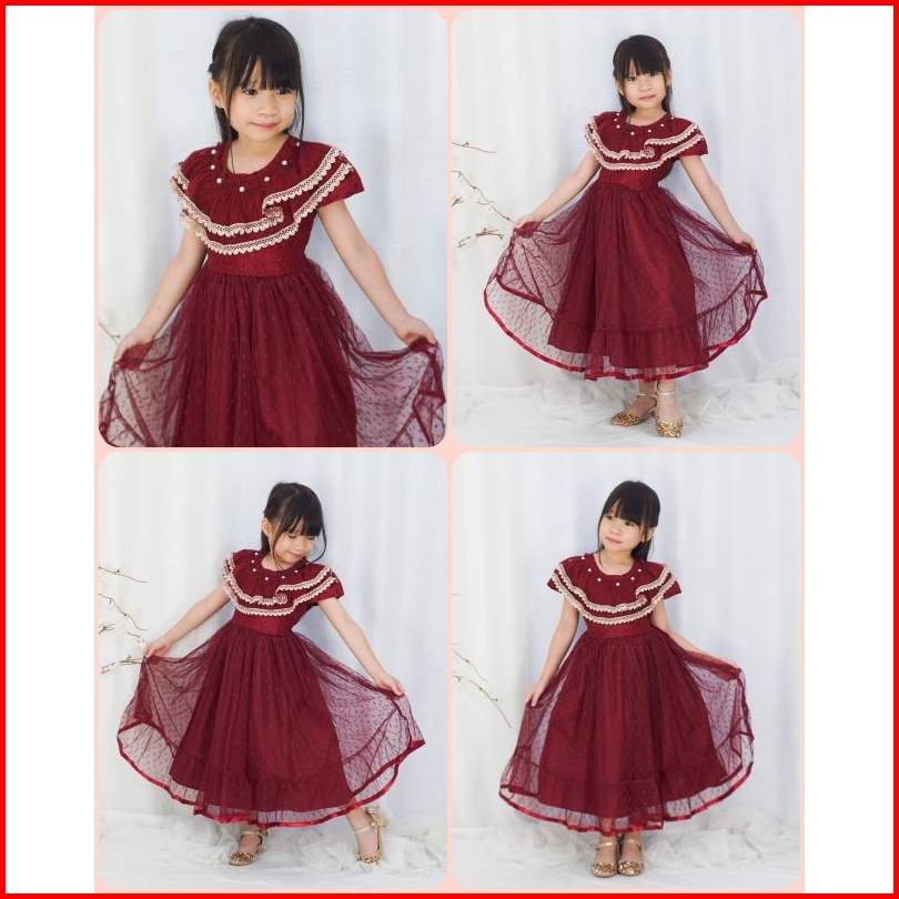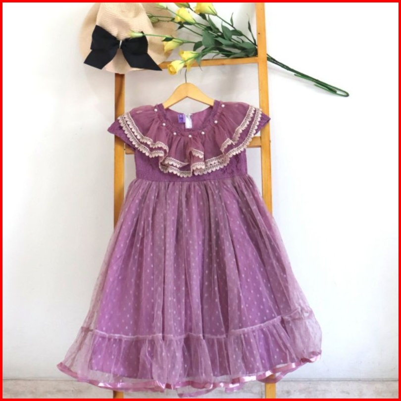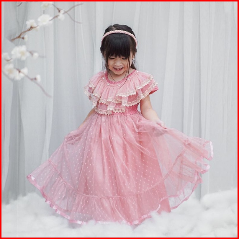 Baju Gaun Anak Perempuan Salsa Dress Renda Tingkat Kombinasi Tile Polkadot Usia 3-10 Tahun