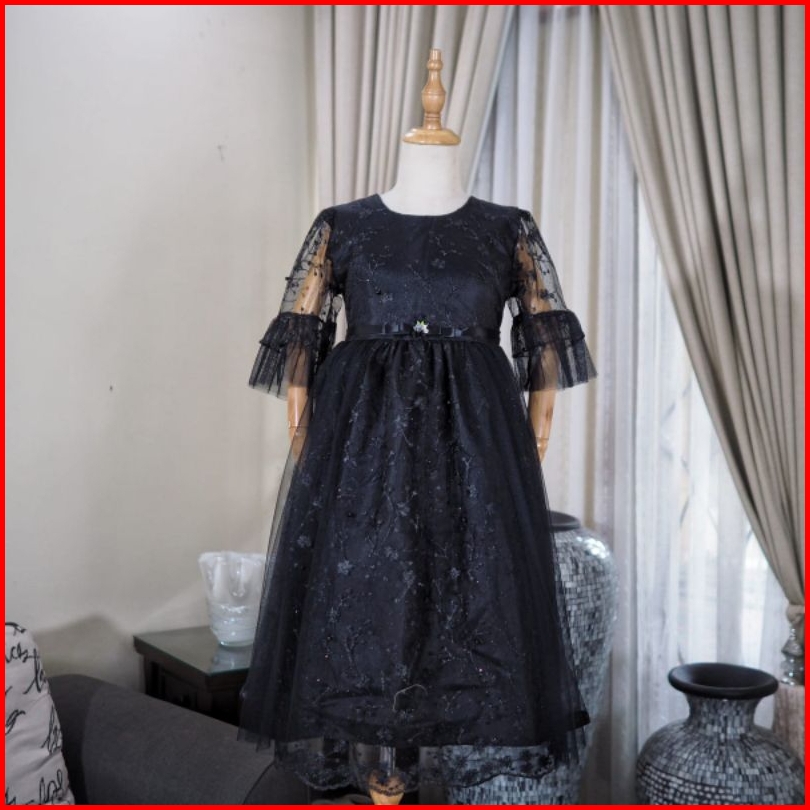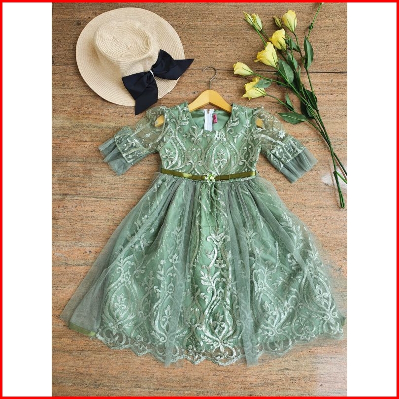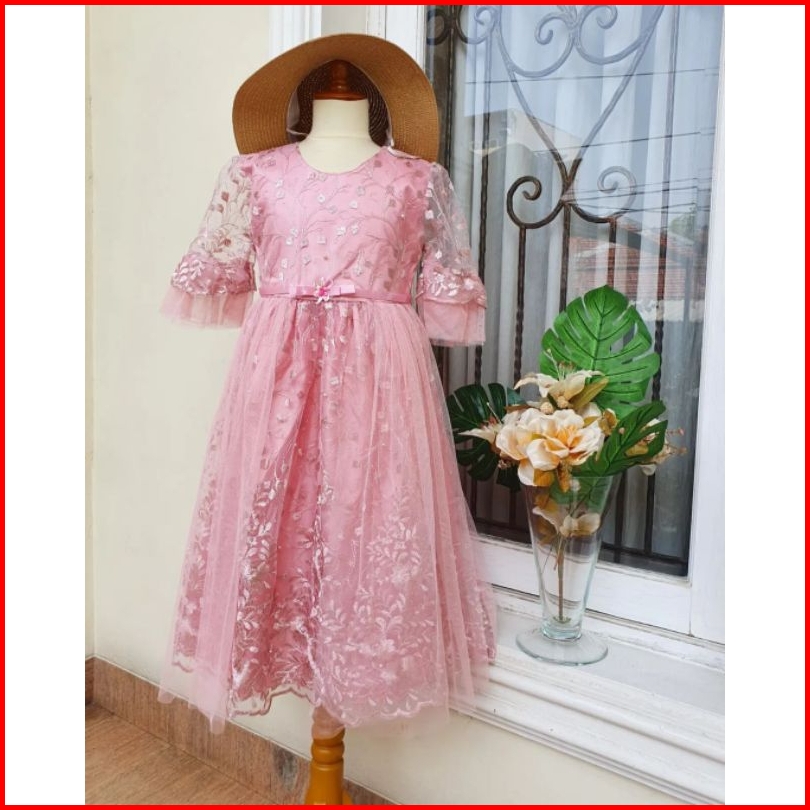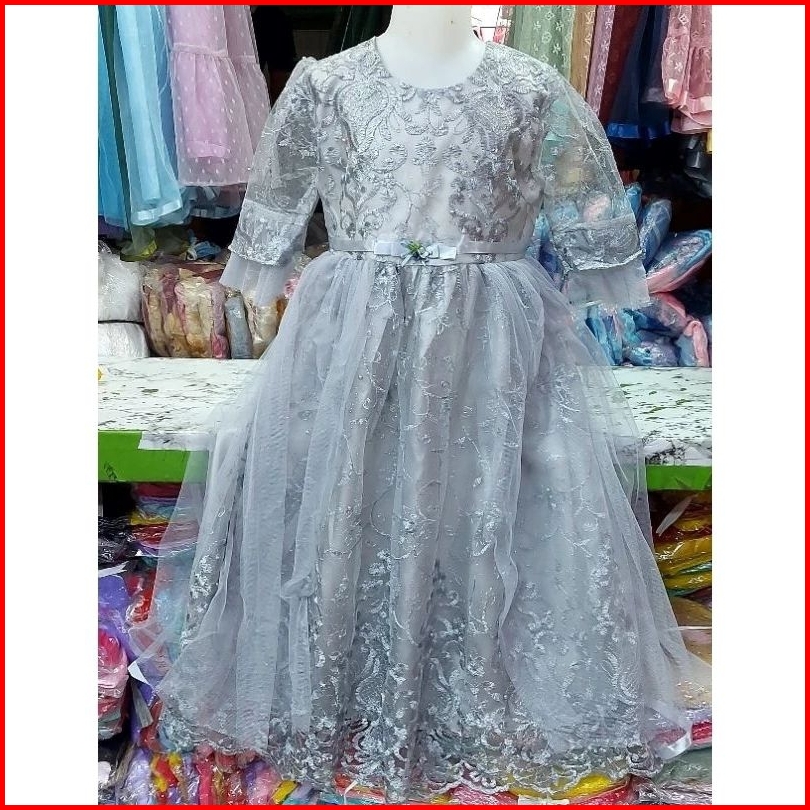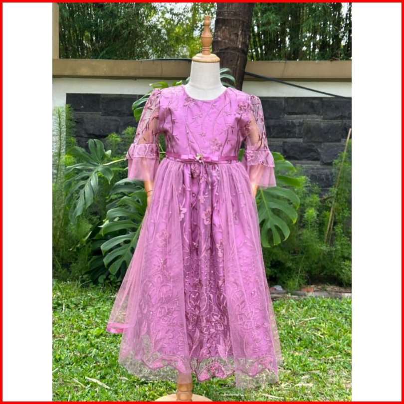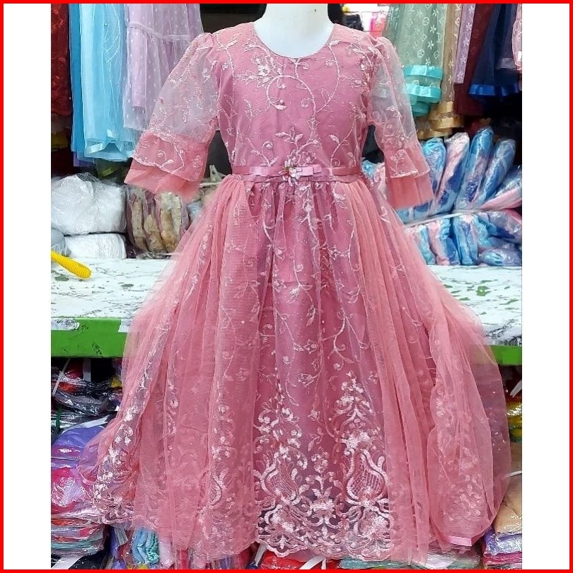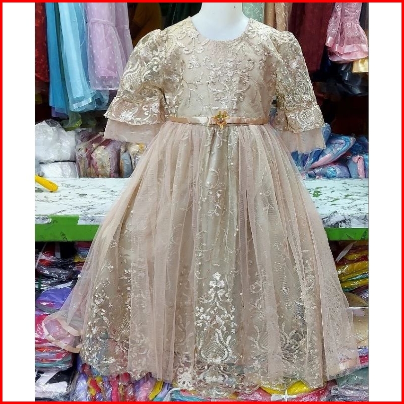 Gaun Pesta Mewah Anak Perempuan Bordir Mutiara Lengan 3 4 Usia 3-12 Tahun