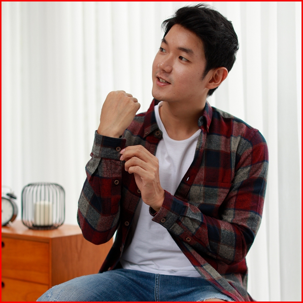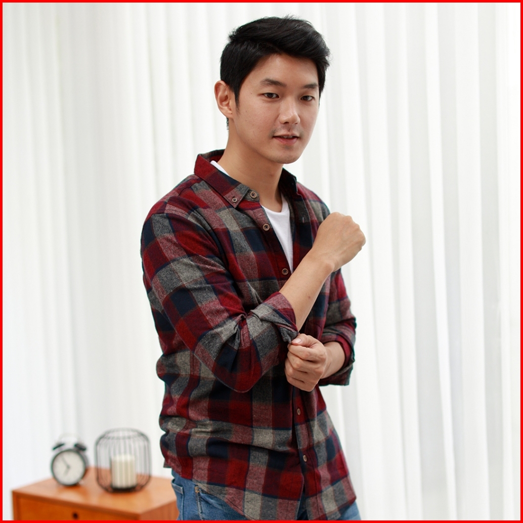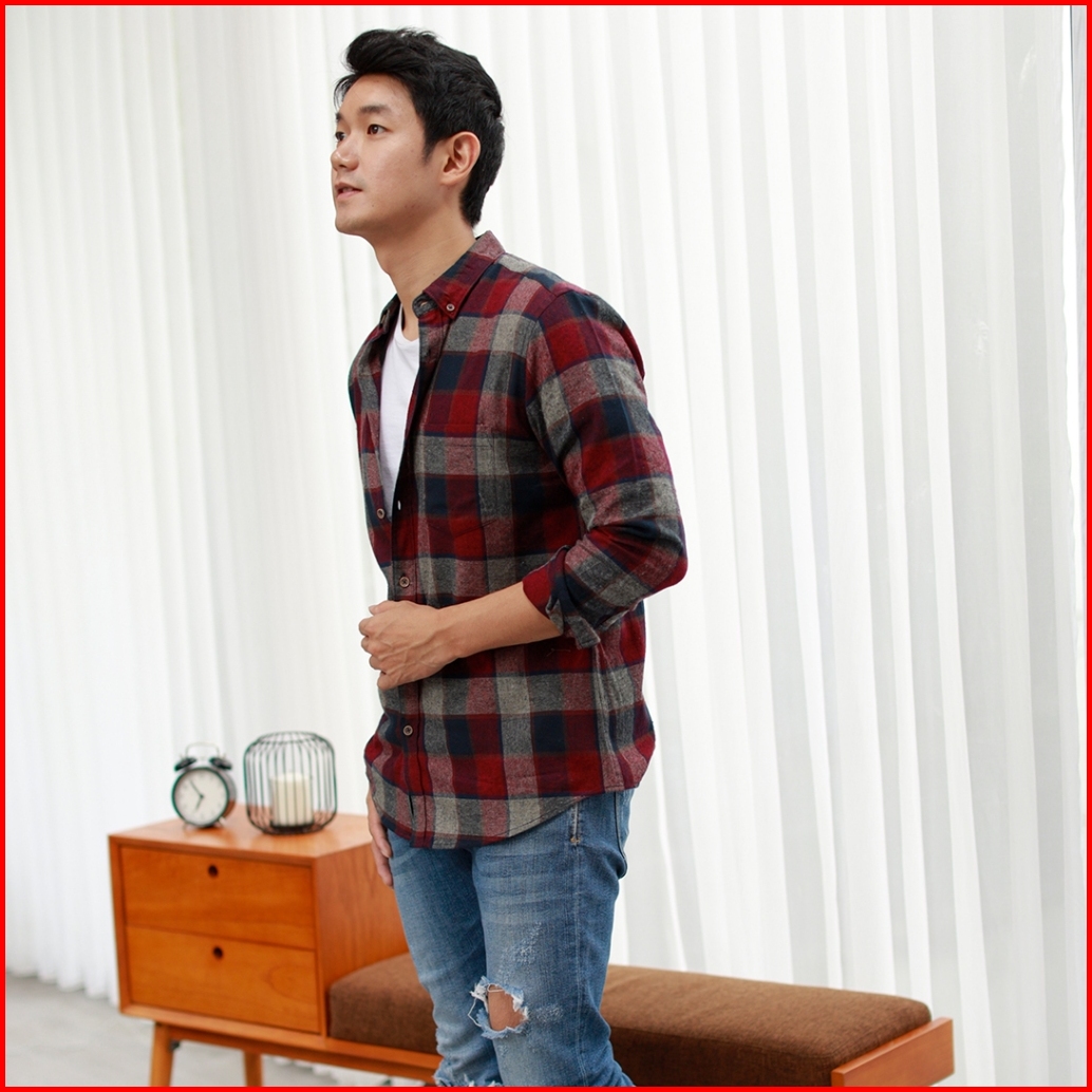 New Kemeja Flannel Cotton Oxcon Maroon Navy