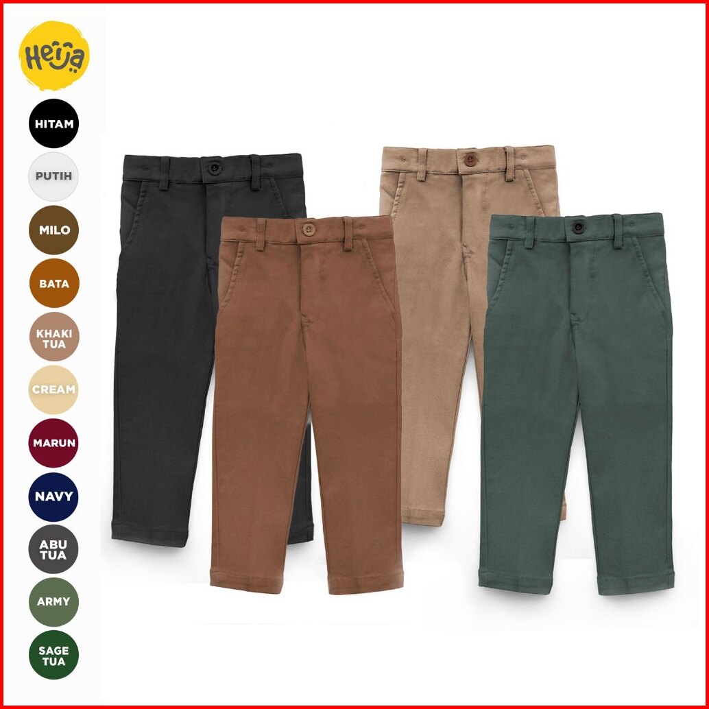 Celana Anak Chino Stretch Panjang Warna Polos 1-10 Tahun - Koleksi Warna 1 Jelo Chino Pants Heija
