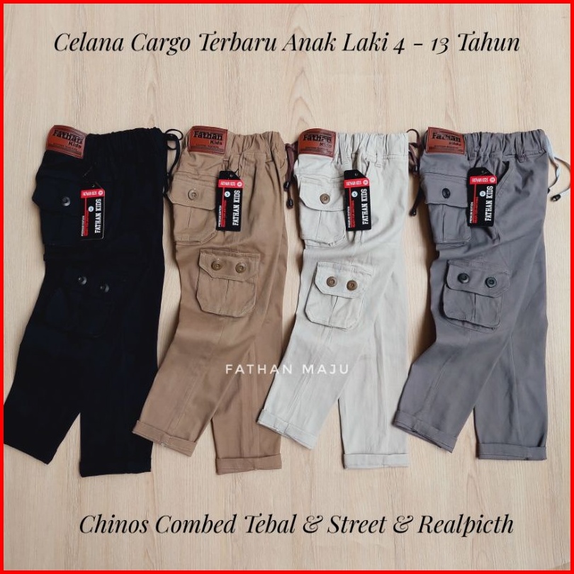 Celana Cargo Chinos Panjang Anak Laki Laki Bahan Katun