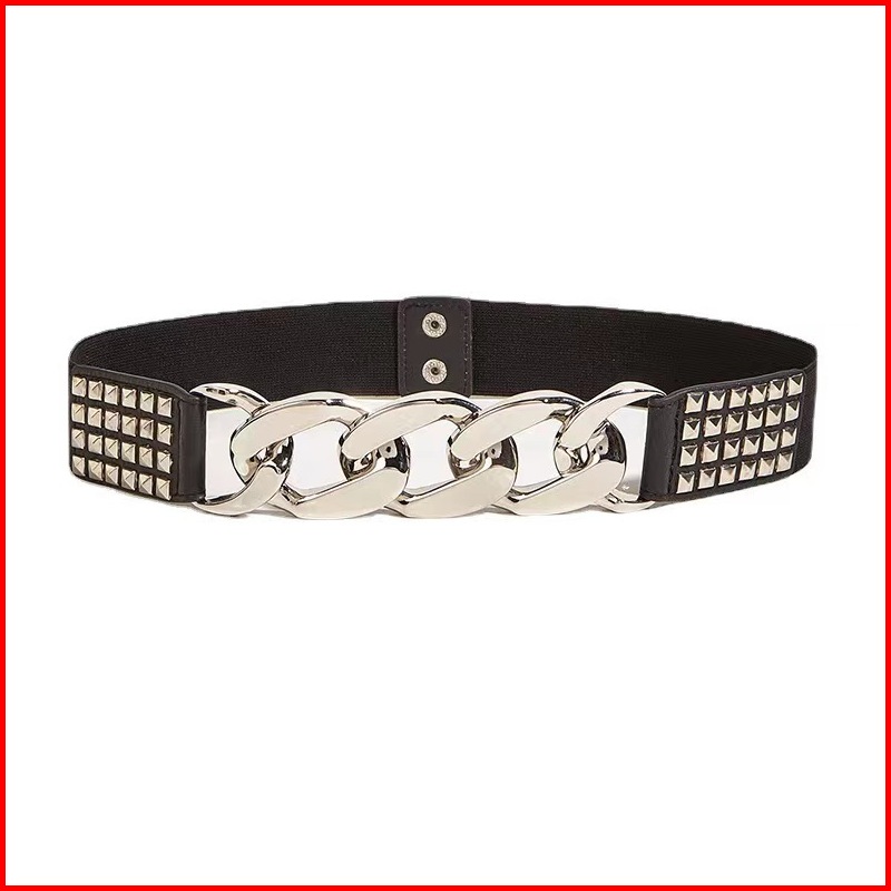 Bgs-126 Ikat Pinggang Karet Melar Stretch Sabuk Wanita Rantai Gaya Paku Willow Belt Women Fashion Style
