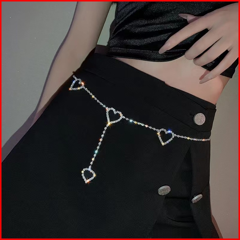 Ikat Rantai Pinggang Logam Belt Rantai Love Bling Bling Branded Gesper Wanita Belt Lt040